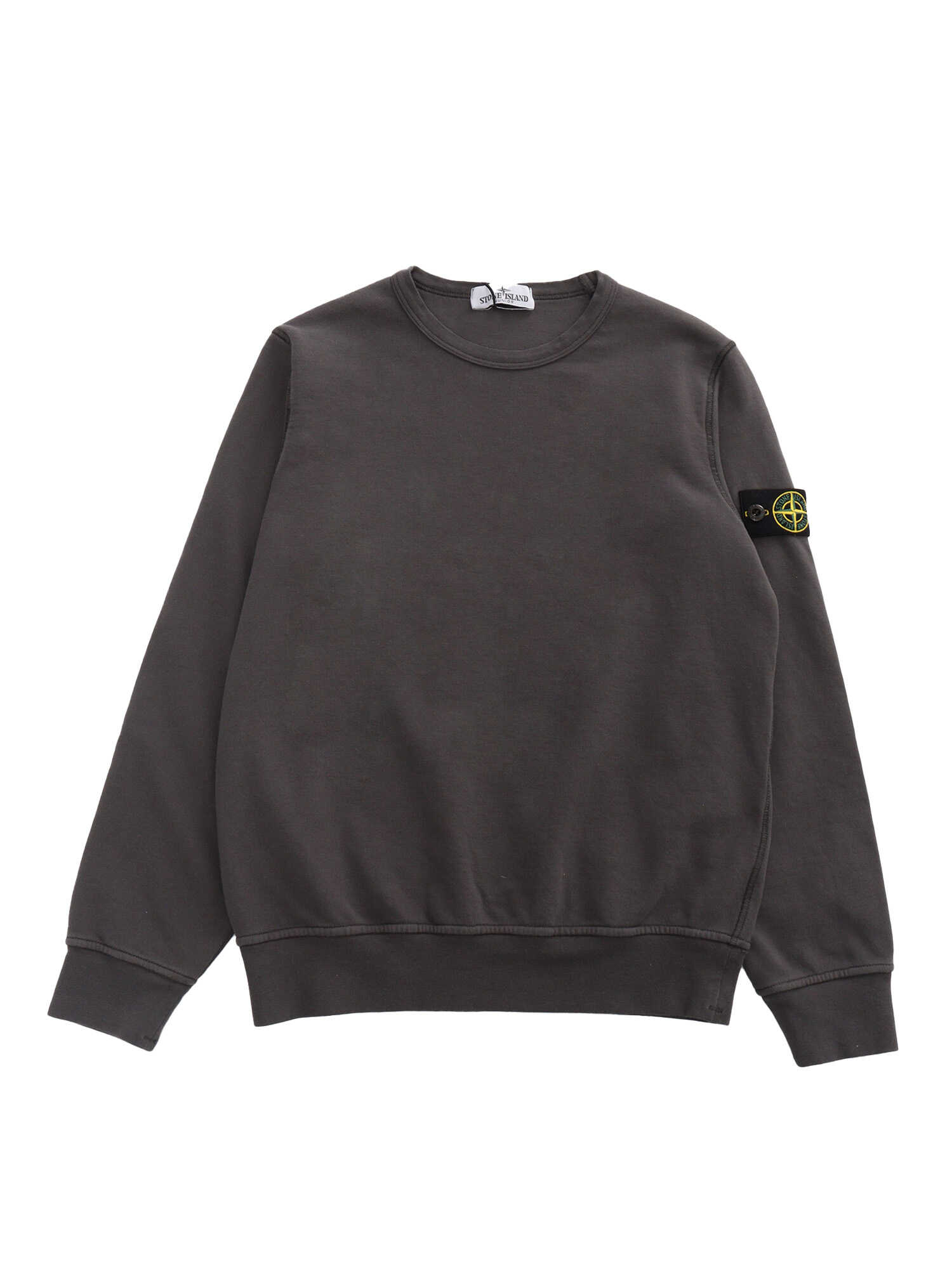 Brown cotton sweatshirt for children with edged crew neckline, logo plate on the sleeve.