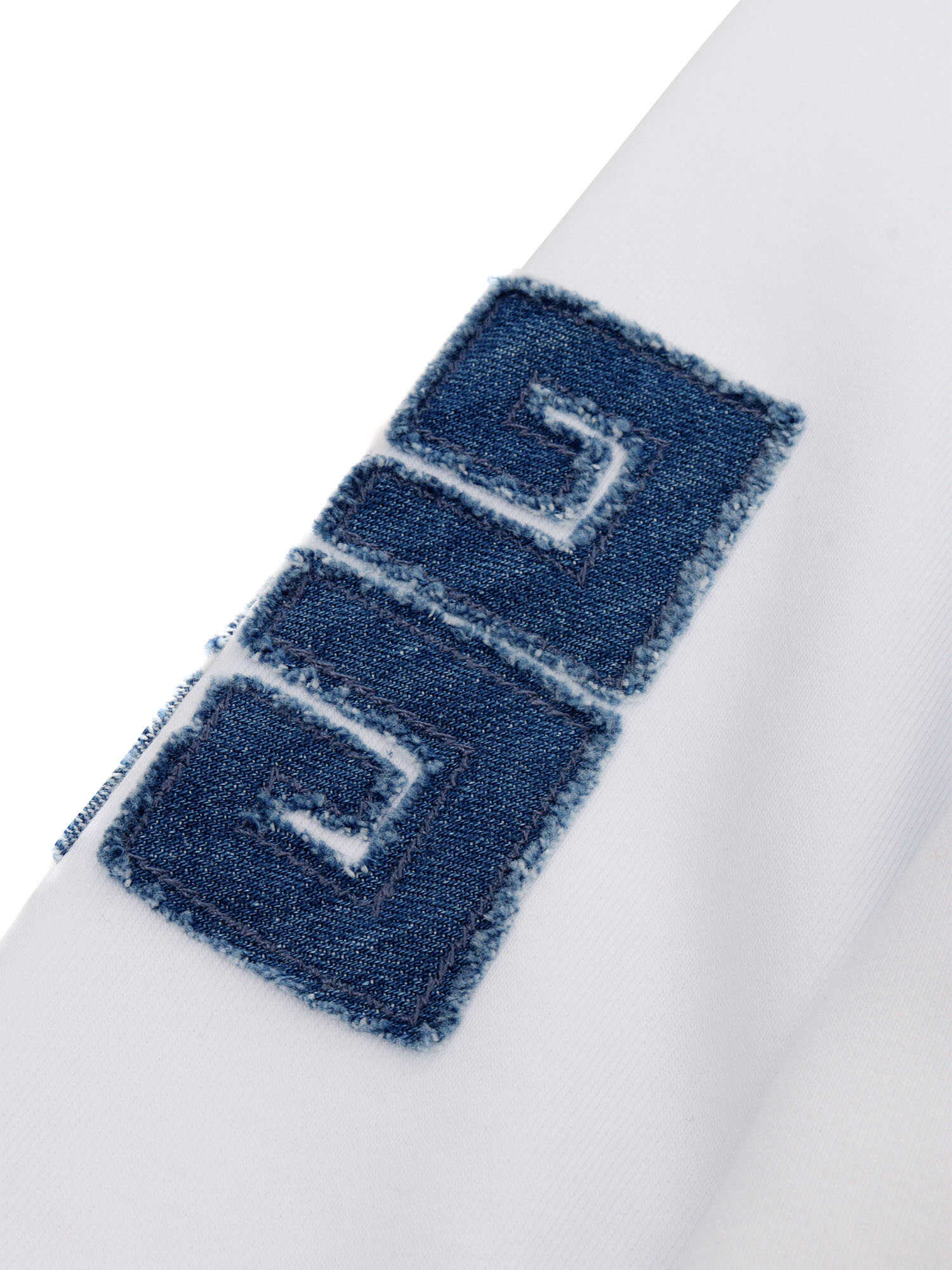 Hooded sweater in fleece, kangaroo pocket, Givenchy denim applique on front, 4G raw edge denim applique on sleeves.