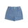 Moncler striped light blue shorts with logo plate and web stripes on the back.