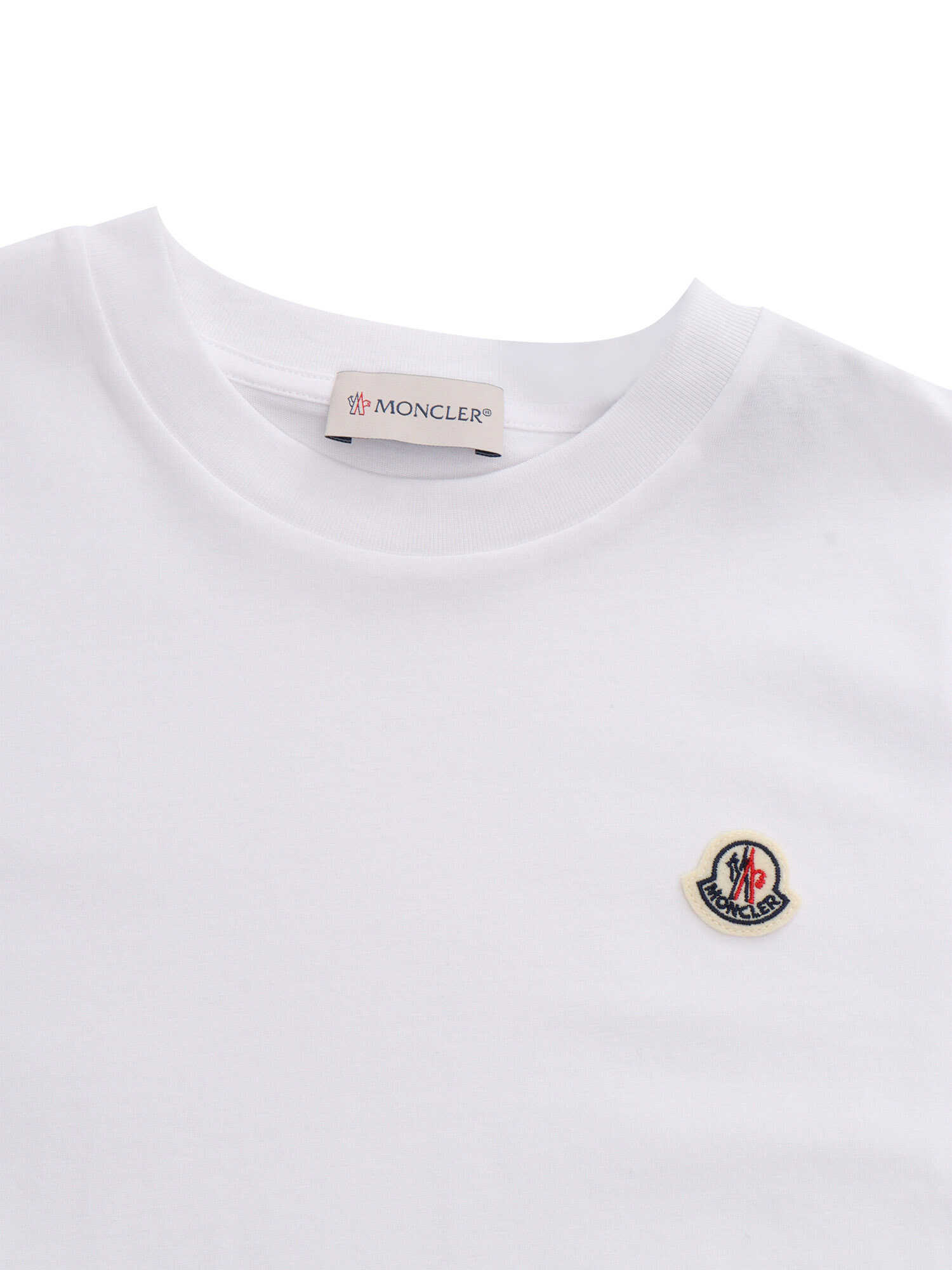 White cotton t-shirt for children with logo plate on the front.