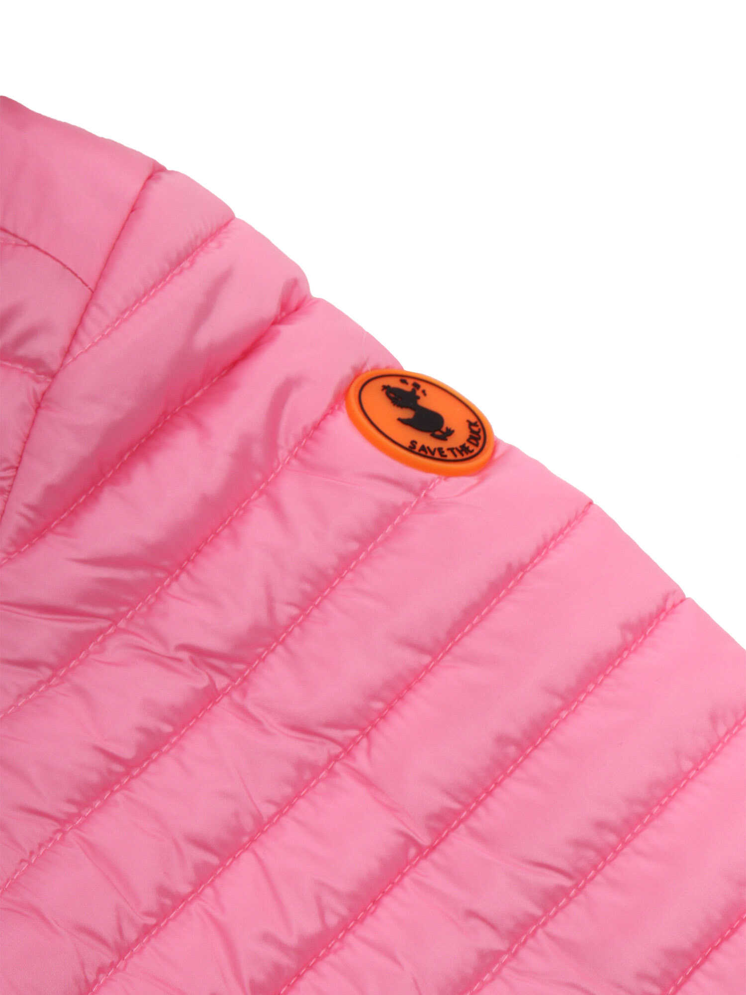 Save the duck pink down jacket for girls in nylon with full zip closure, orange logo plate on the sleeve.