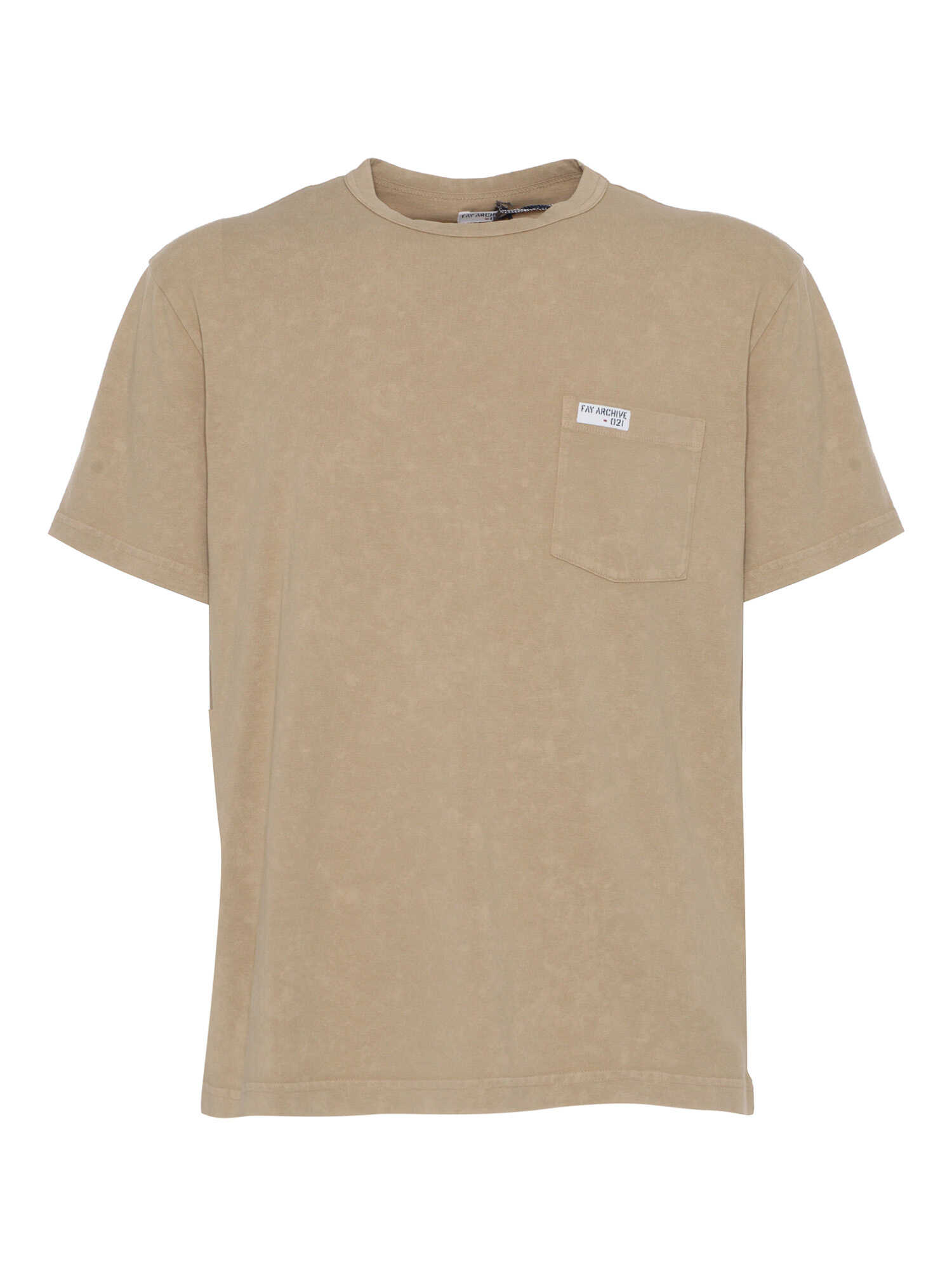 Fay men's archive brown cotton t-shirt with front pocket and logo label.