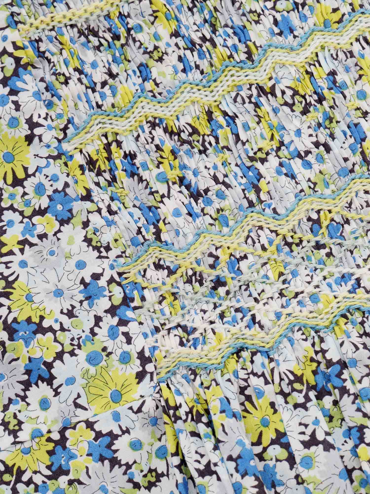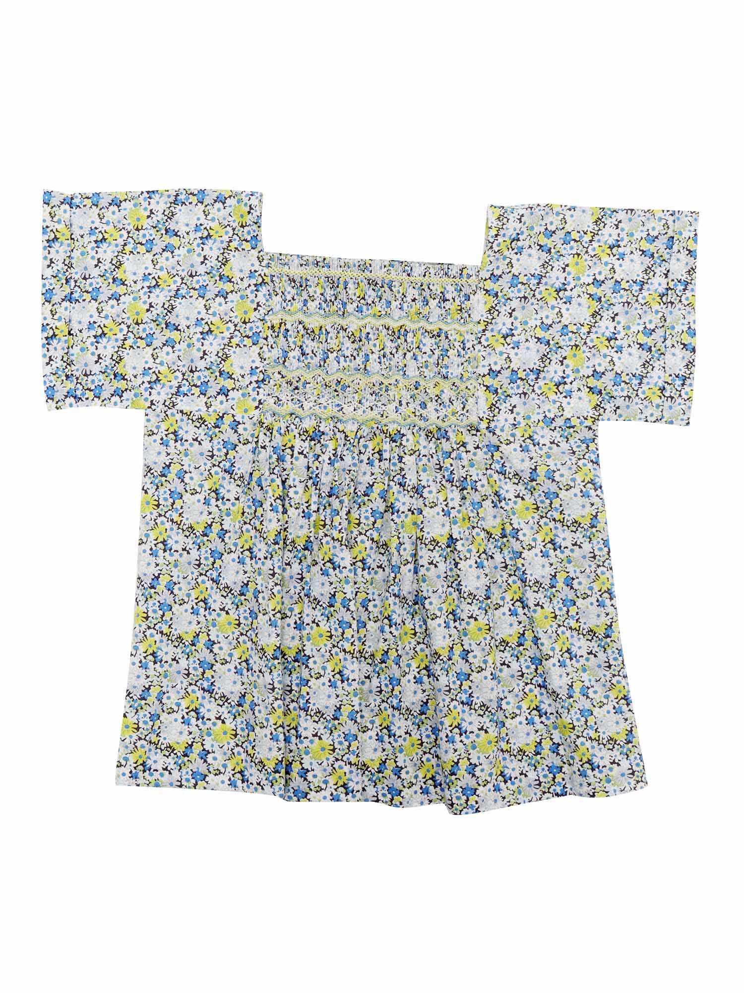 Bonpoint girls' floral t-shirt in cotton with short elastic sleeves to wear on the shoulders, flared at the bottom.