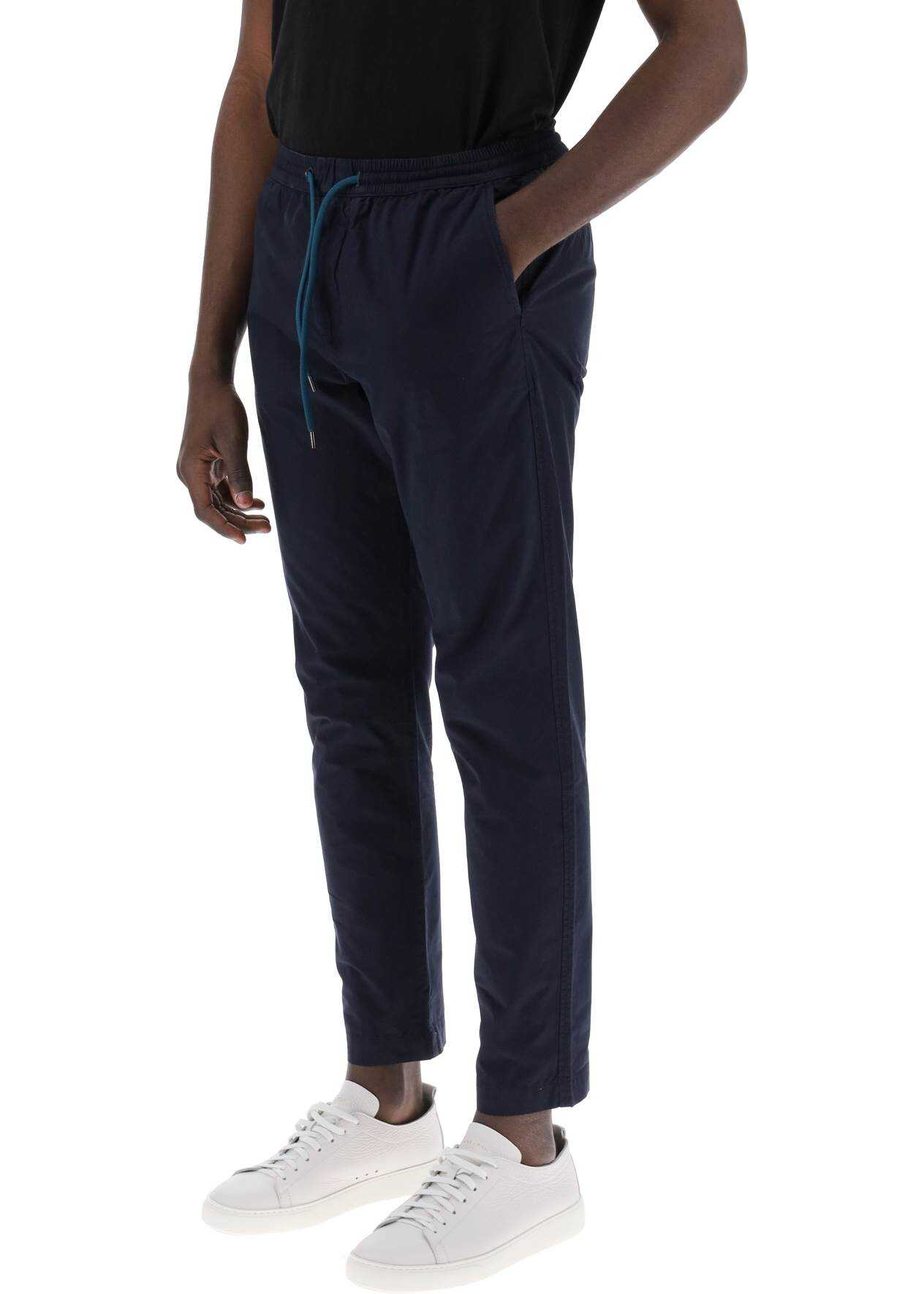 PS Paul Smith Regular Fit Tapered Pants, made from lightweight organic cotton with an adjustable elastic drawstring waist, slanted side pockets and back welt pockets. Finished with a fabric logo patch on the back. The model is 187 cm tall and wears size L.