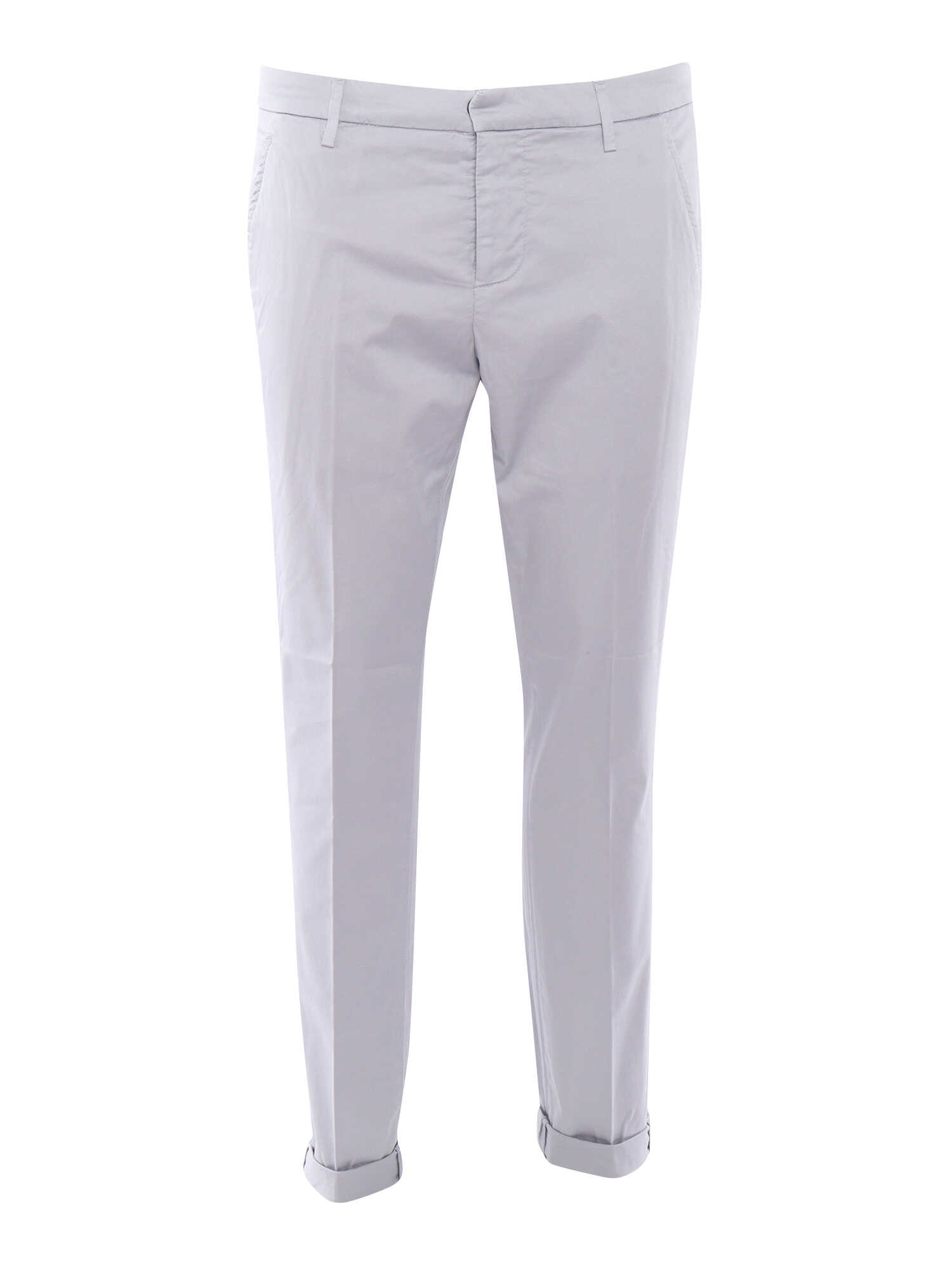 Dondup men's gray chino trousers in stretch cotton, cut leg, cuffs, 5 pockets.