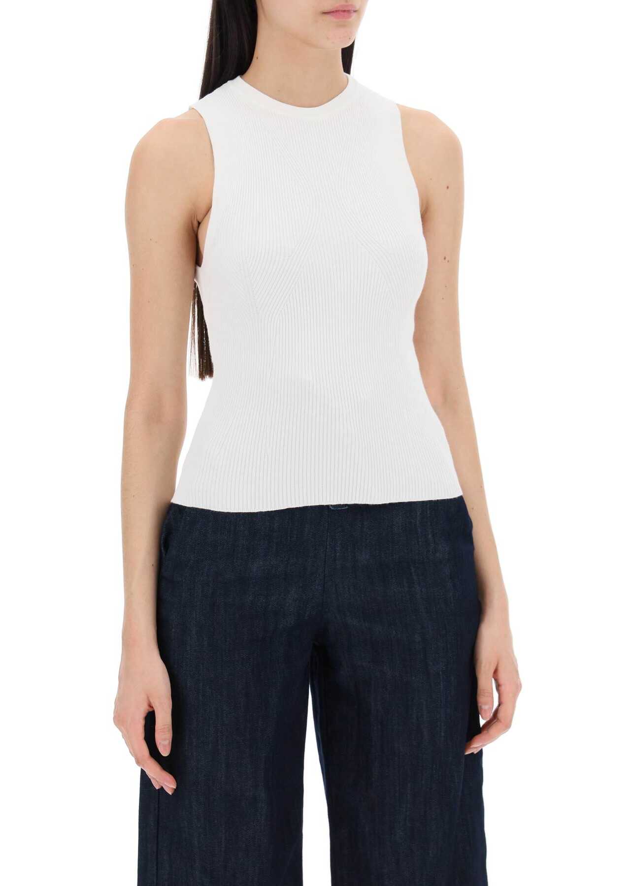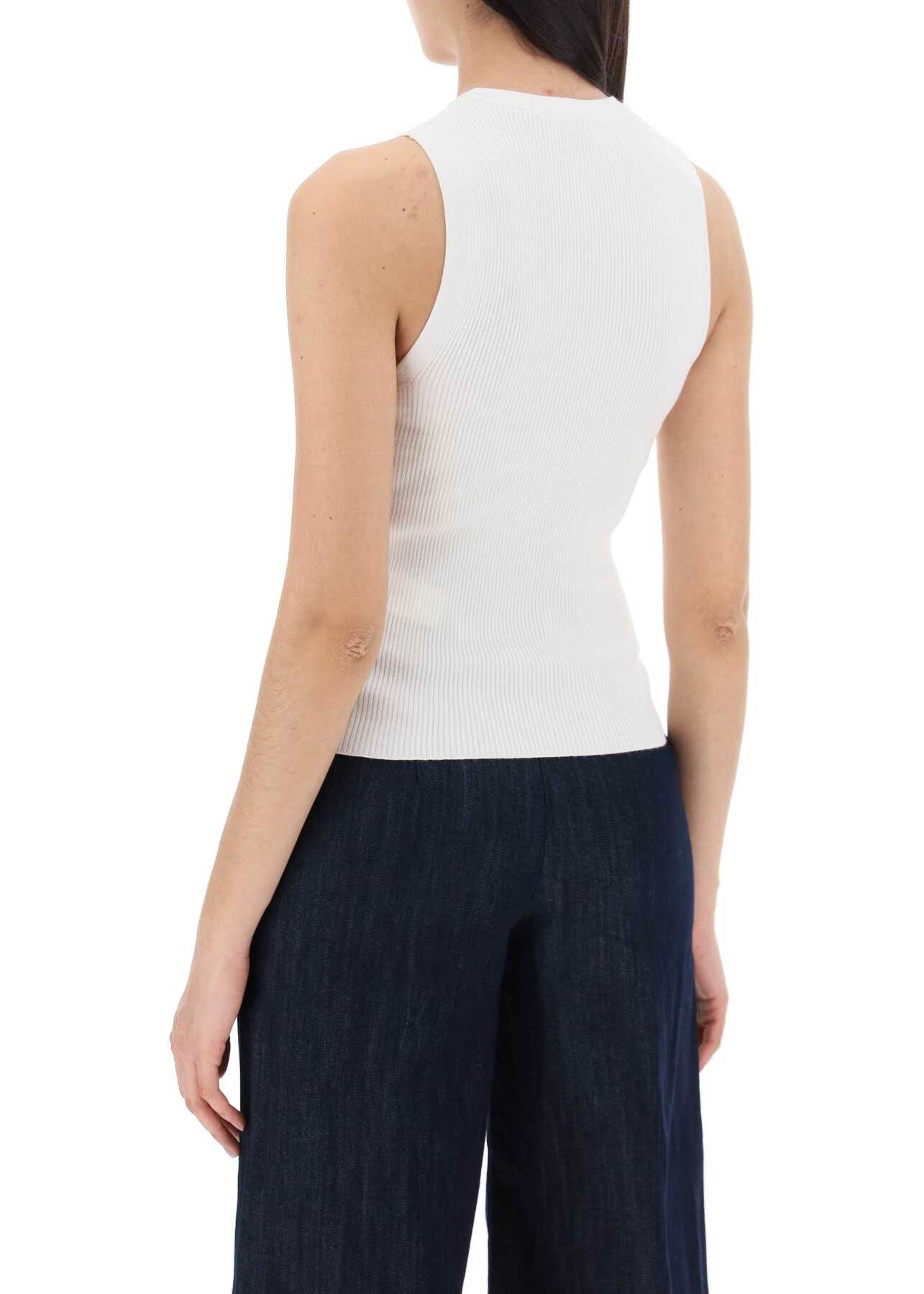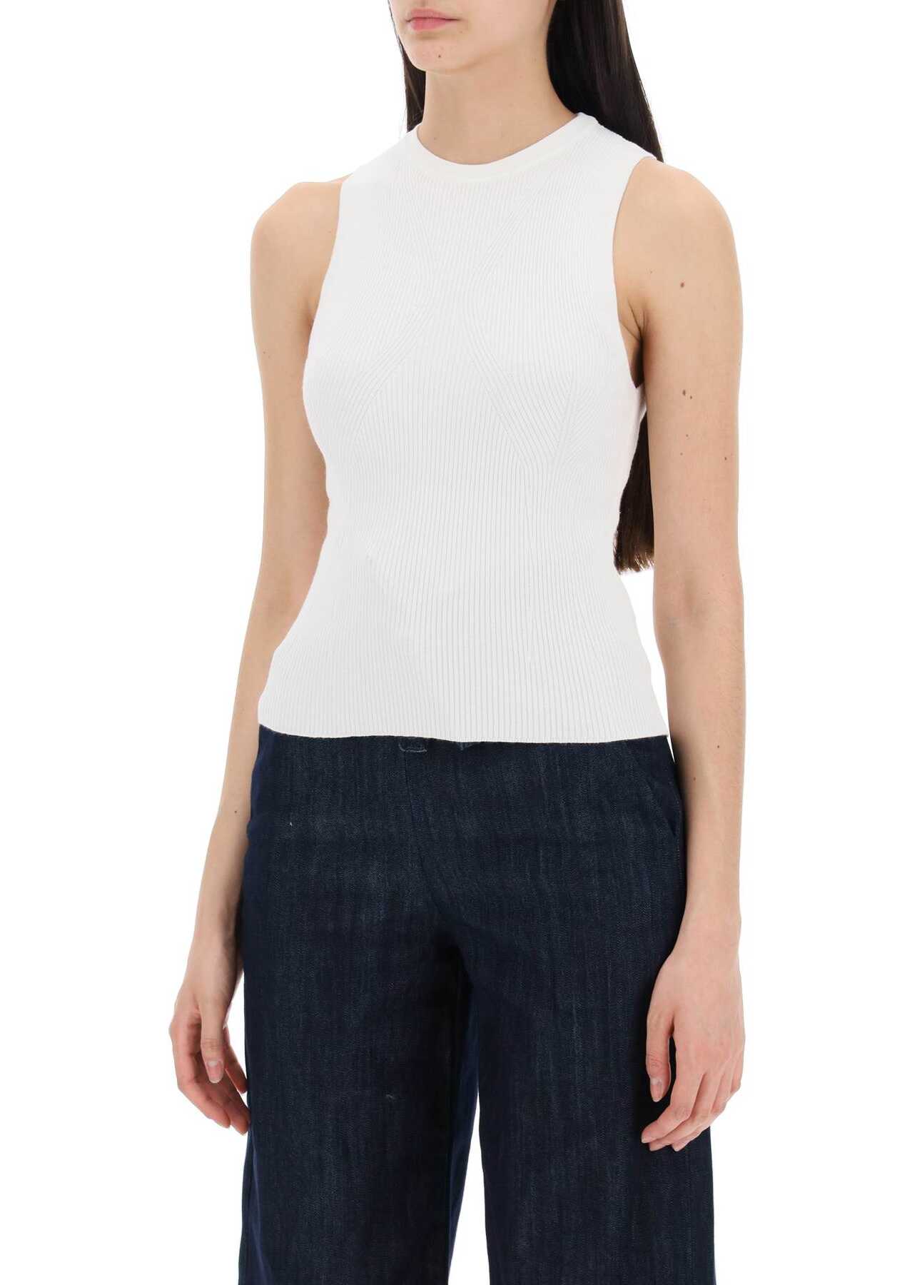 The Montefleury top by MVP Wadrobe is made of a stretchy, eco-friendly viscose blend knit with ribbed detailing. The fitted silhouette features a round neckline and ruffled hem. The model is 177 cm tall and wears an IT size 40.