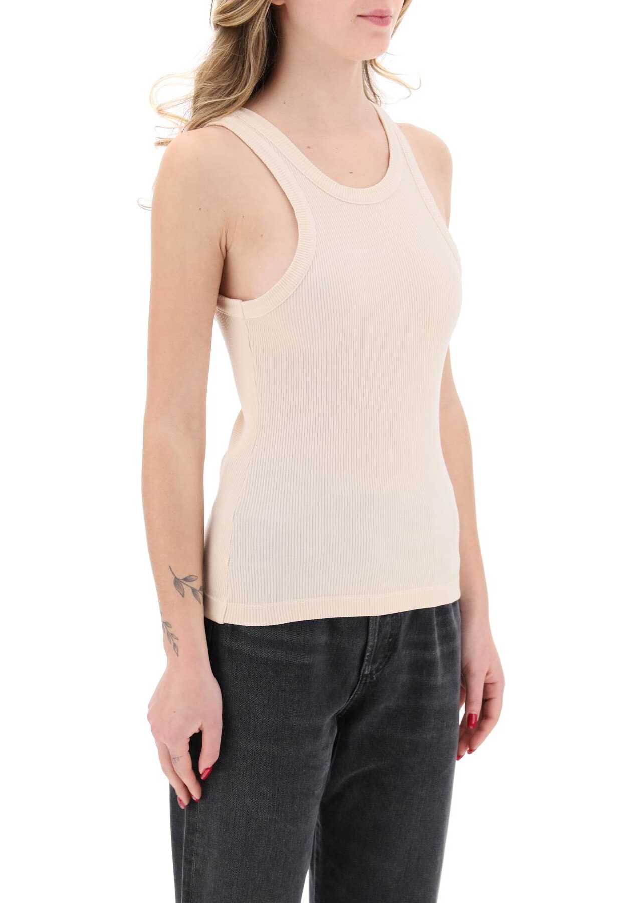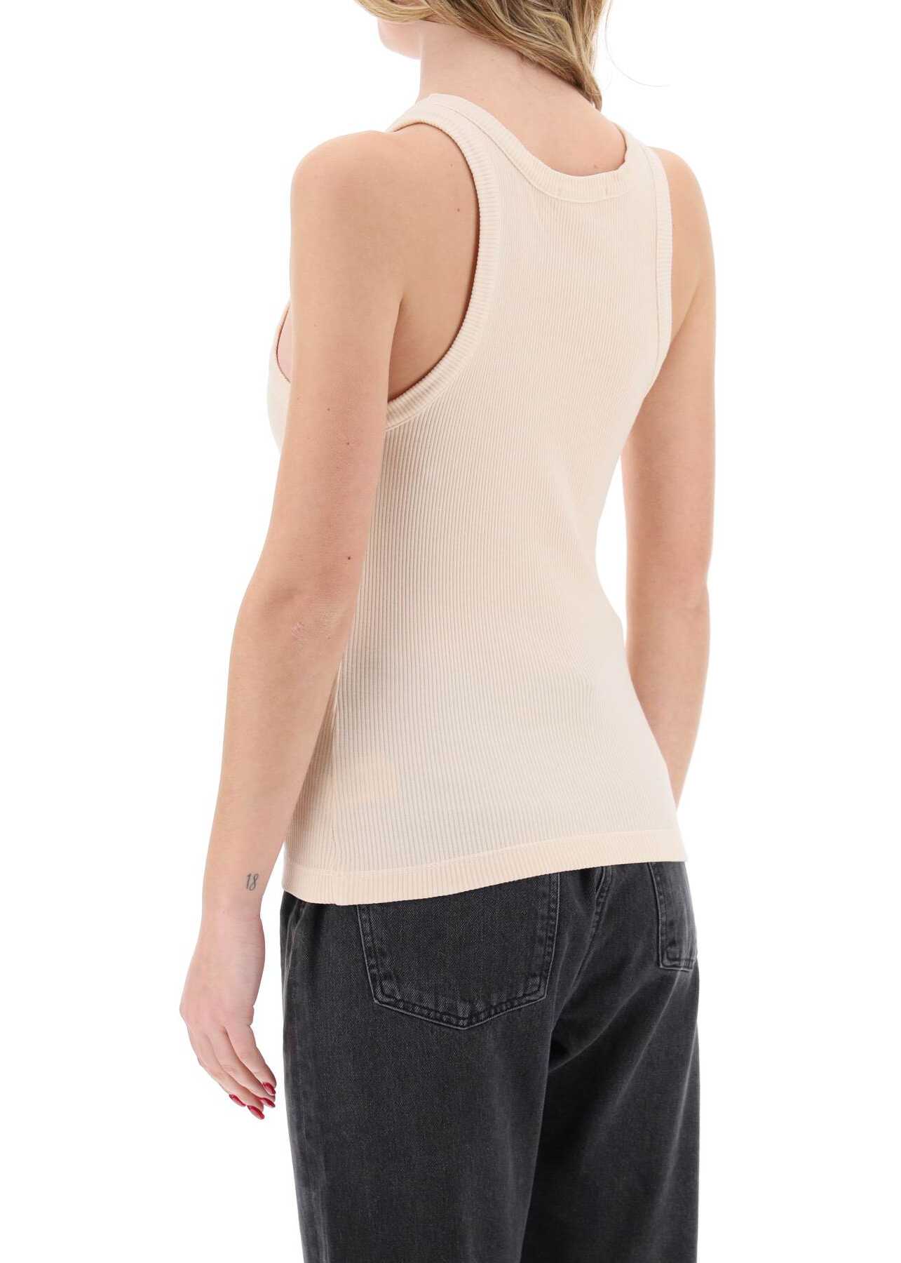 This Agolde sleeveless top is made of ribbed organic cotton jersey and features a fitted silhouette. The model is 177 cm tall and wears a size XS.