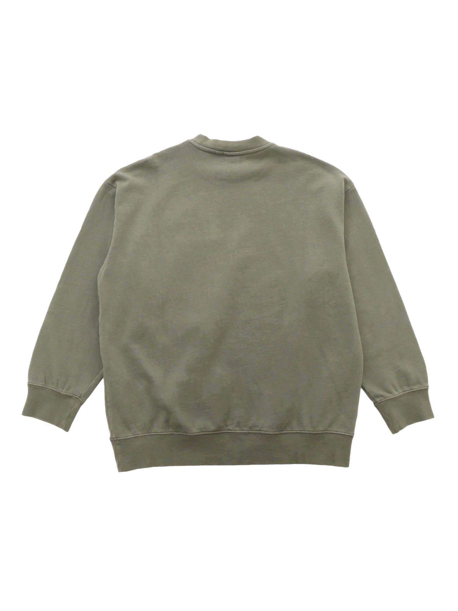 Green sweatshirt for children with contrasting logo on the front, patch pocket, crew neck, finished hem.