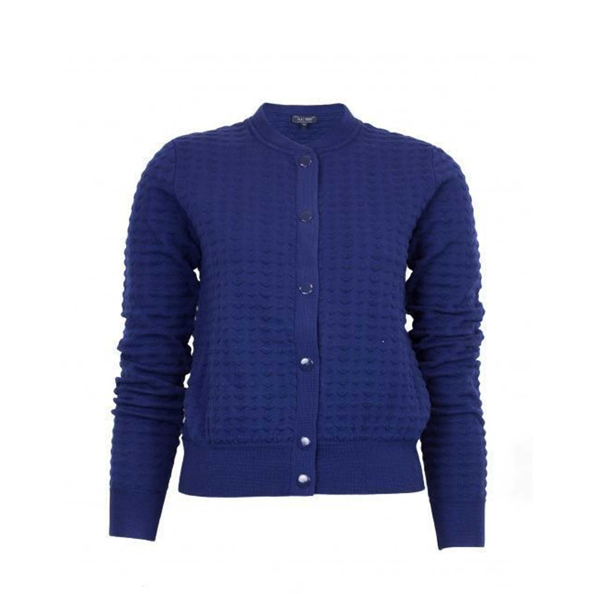 - Composition: 32% Acrylic 1% Elastane 36% Polyamide 31% Wool - Long sleeves - Ribbed trims - Hand wash - Snap button closure - Made in China - Gender: WOMEN - MPN 6X5B4A 5M1MZ_1587 - Barcode: 8056685974435 - Code: KNT AJ 2 CR SS22 09494