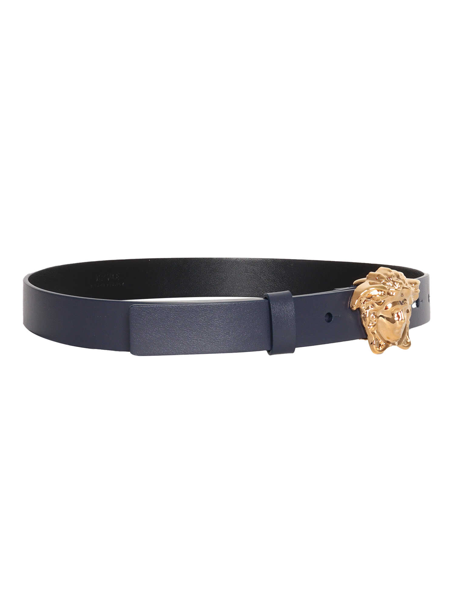 Versace black calfskin belt with gold medusa head, height 25mm.