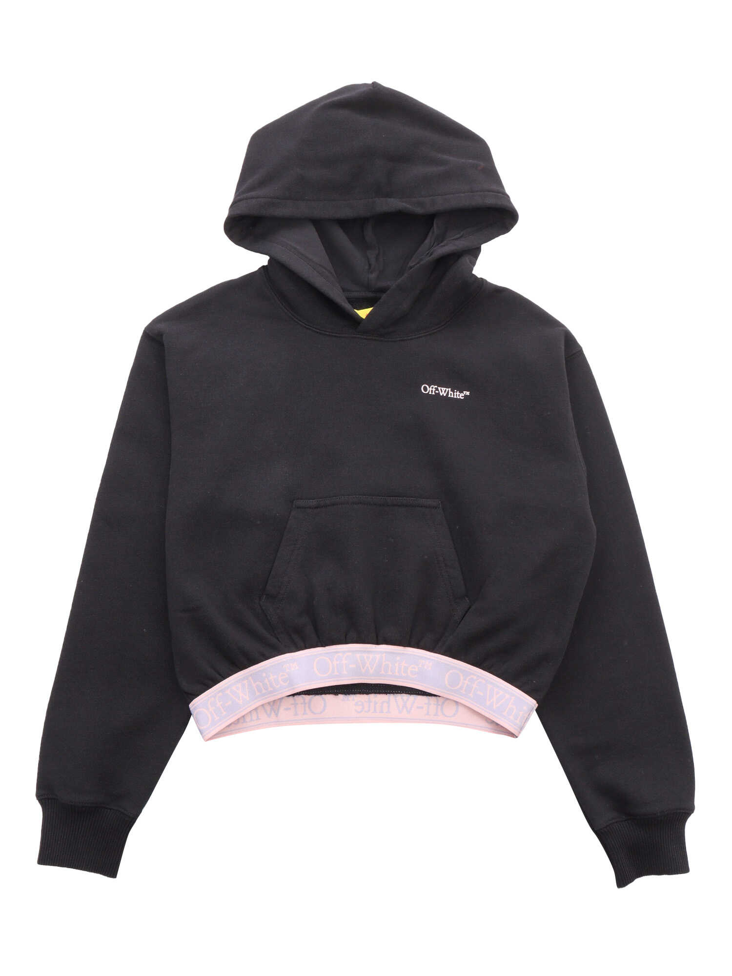 Black cropped sweatshirt in stretch cotton with logo on the front, hood, contrasting elastic waistband with logo print.