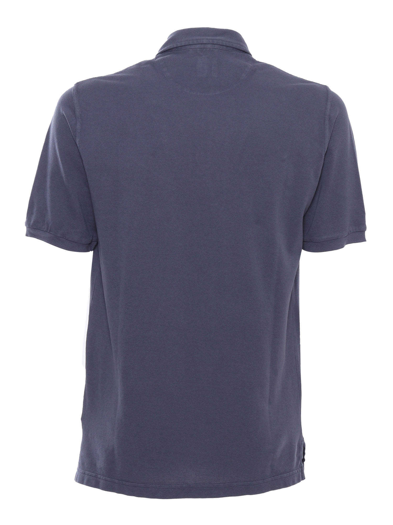Fedeli men's polo shirt in blue cotton with classic collar, front buttoning, short sleeves.
