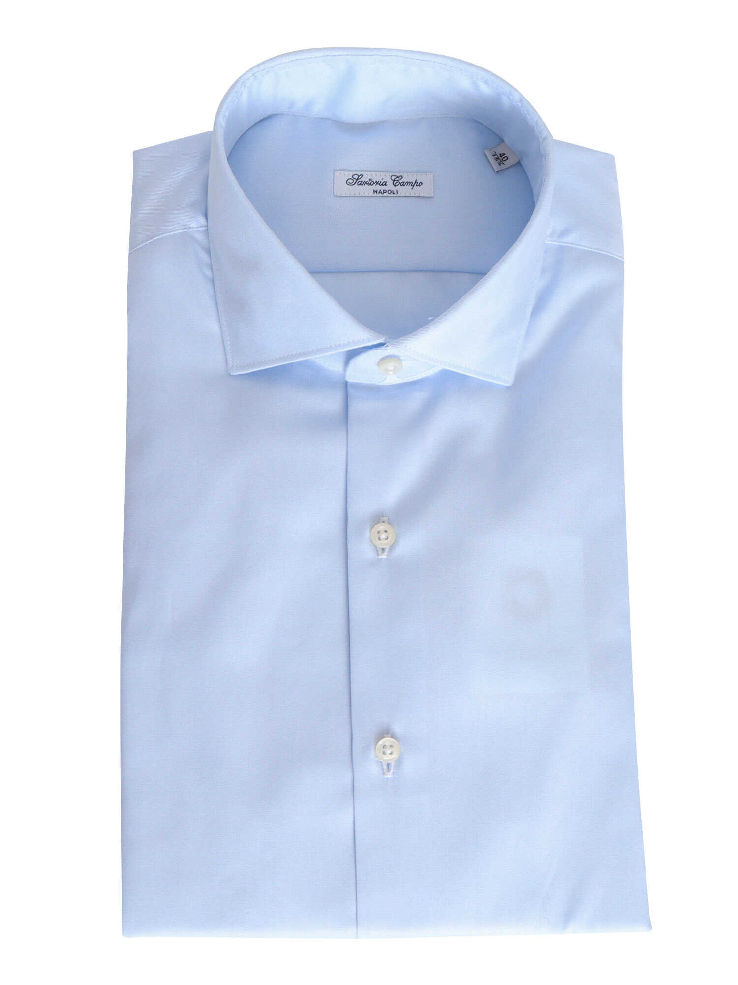 Light blue cotton shirt for men with classic collar and front buttons.