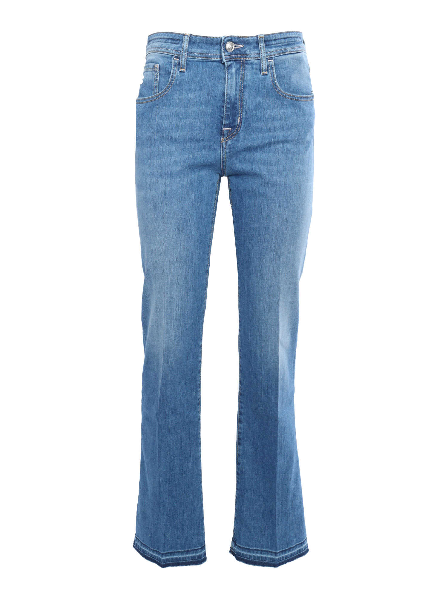 Jacob Cohen blue women's jeans 5 pockets in stretch cotton, cut leg.