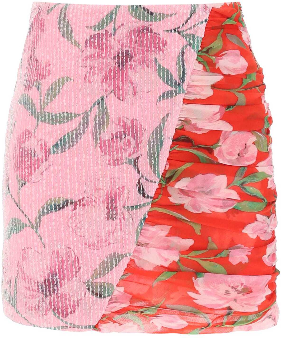 This Rotate miniskirt features a fitted silhouette and an all-over floral print. The design is made from sequin-covered fabric, lined with chiffon, and enhanced by a ruffled contrast insert and a hidden back zipper. The model is 177 cm tall and wears a size EU 36.