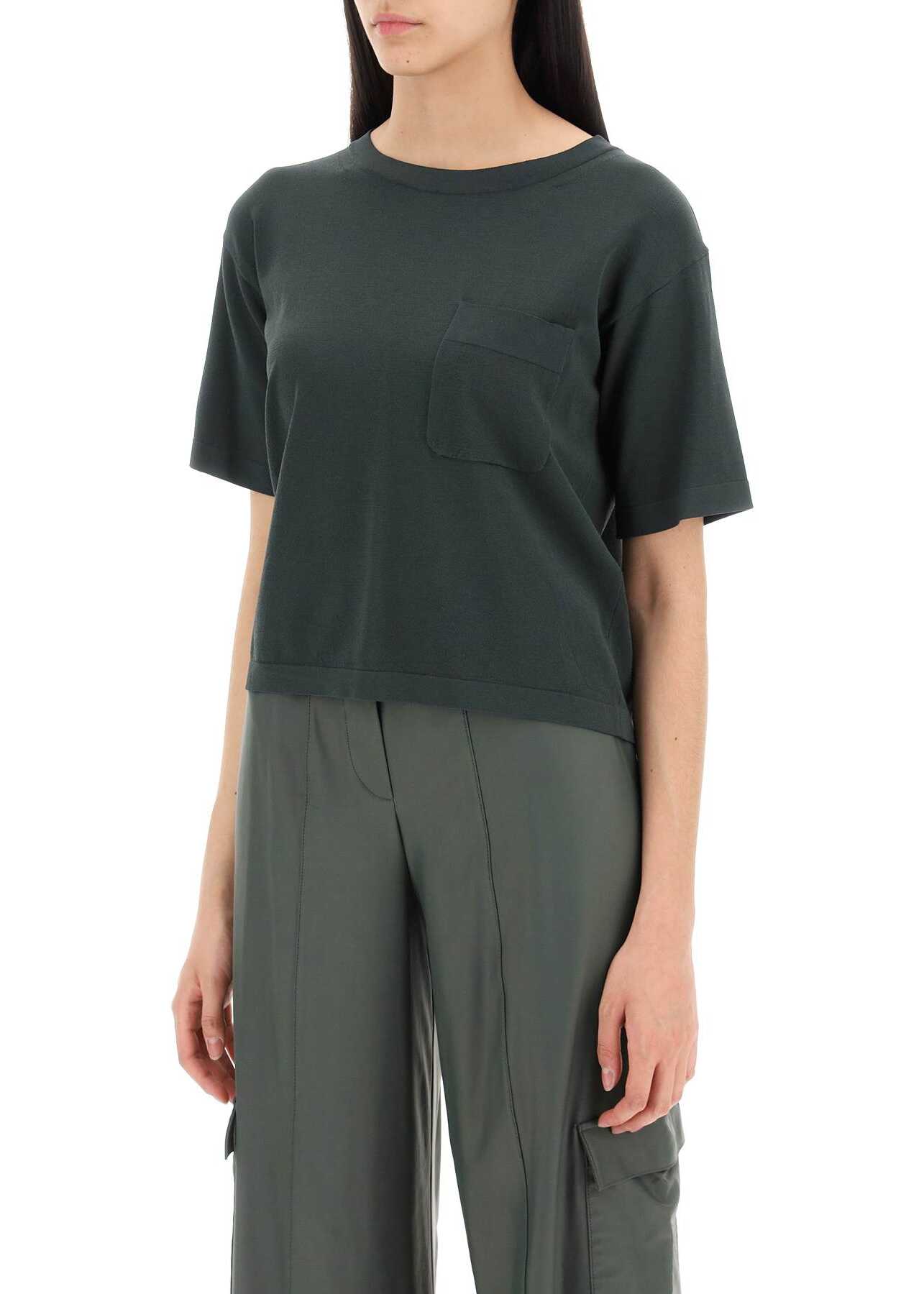 The Acro T-shirt from the Max Mara collection is made of viscose knit with a short and boxy silhouette and dropped shoulder short sleeves. The simple design is personalized with a chest pocket. The model is 177 cm tall and wears size XS.
