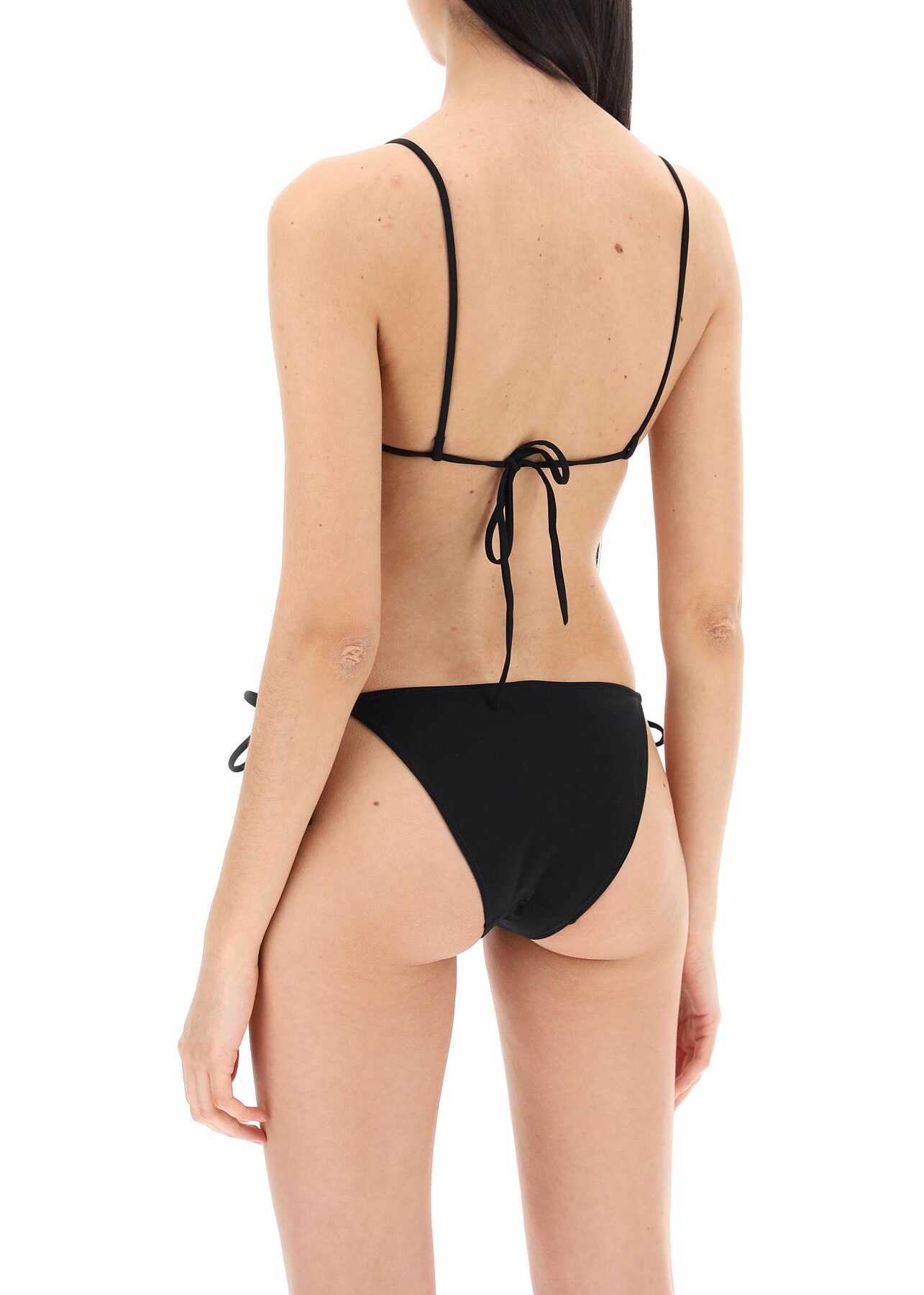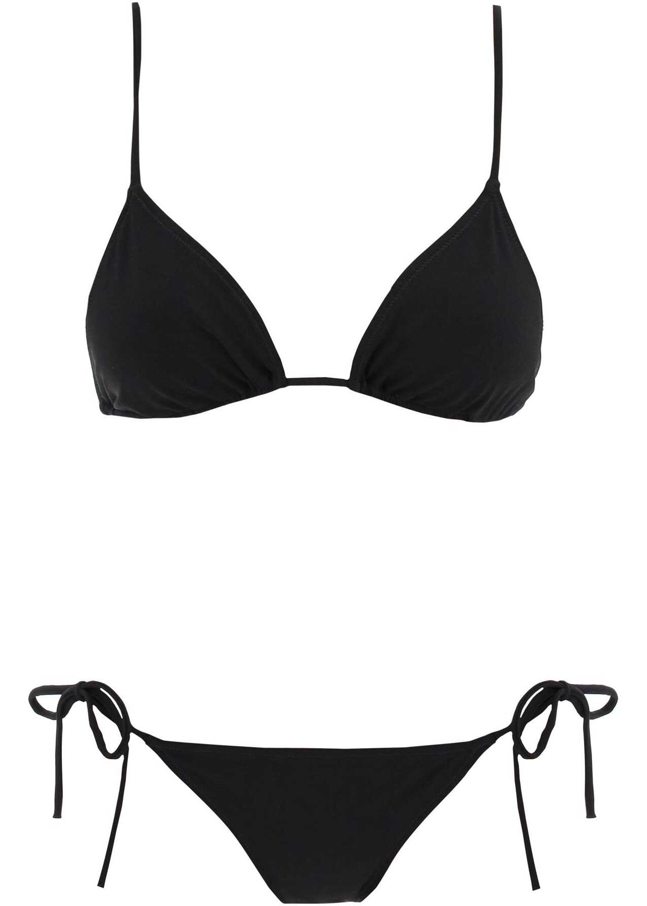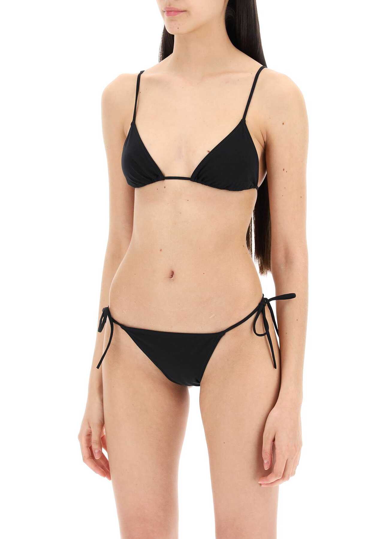 The Venti bikini set is made of matte technical Lycra with a top and bottoms featuring thin, adjustable ties. The model is 177 cm tall and wears size XS.