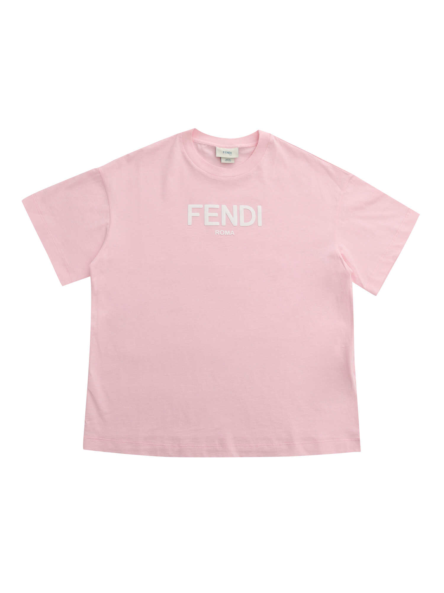 Pink T-shirt with contrasting Fendi logo on the front, in cotton.