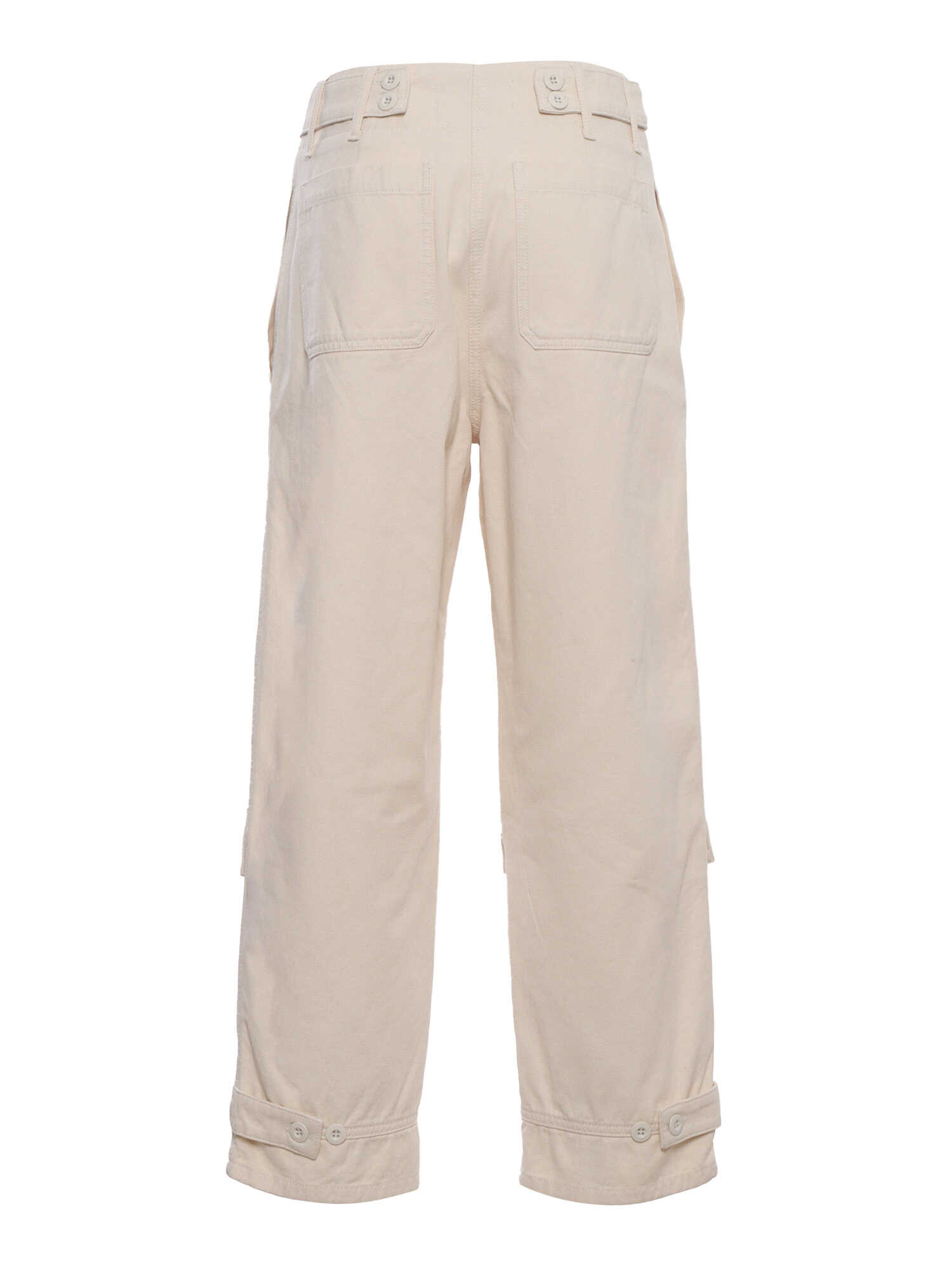 Gilbert Cargo-like trousers in cotton with patch pockets on the front, welt pockets, adjustable reinforced waistband with buttons.