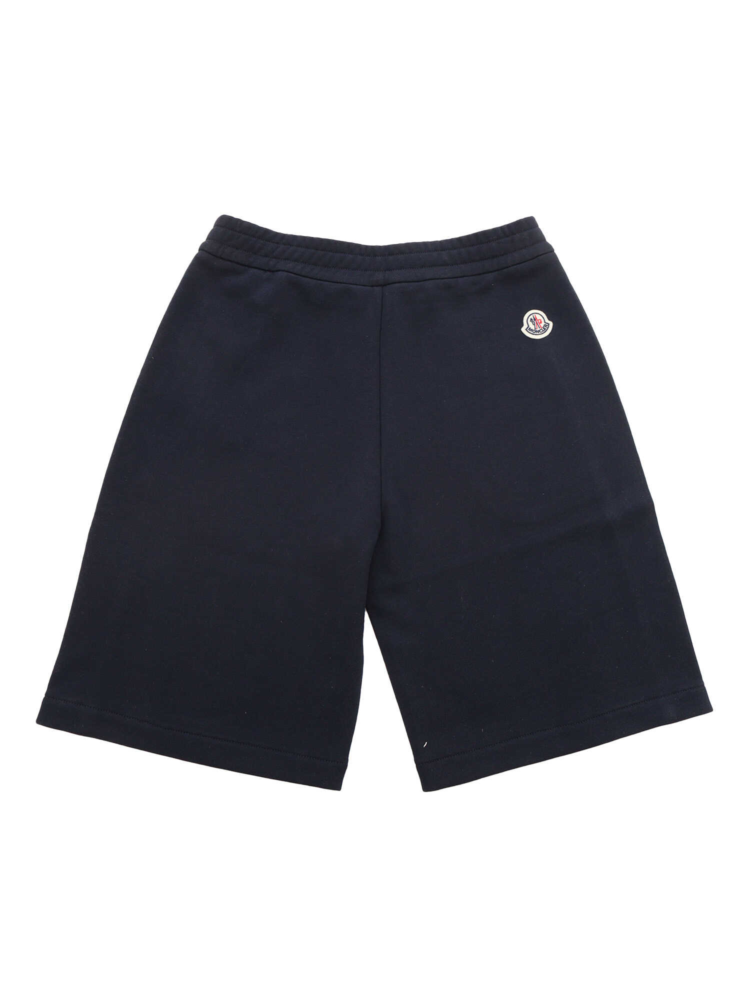 Cotton fleece shorts with elastic waistband, red side stripes, Moncler logo on the rear plate.