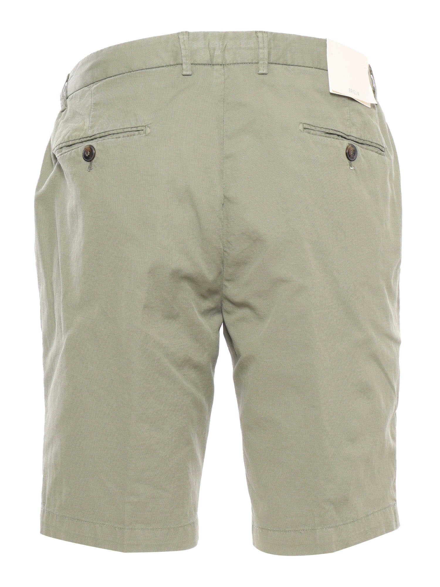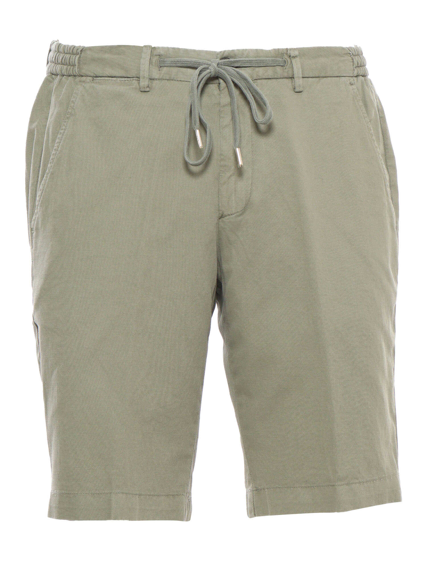 Military green men's linen Bermuda shorts with drawstring closure at the waist, belt loops, welt pockets, contrasting back label.