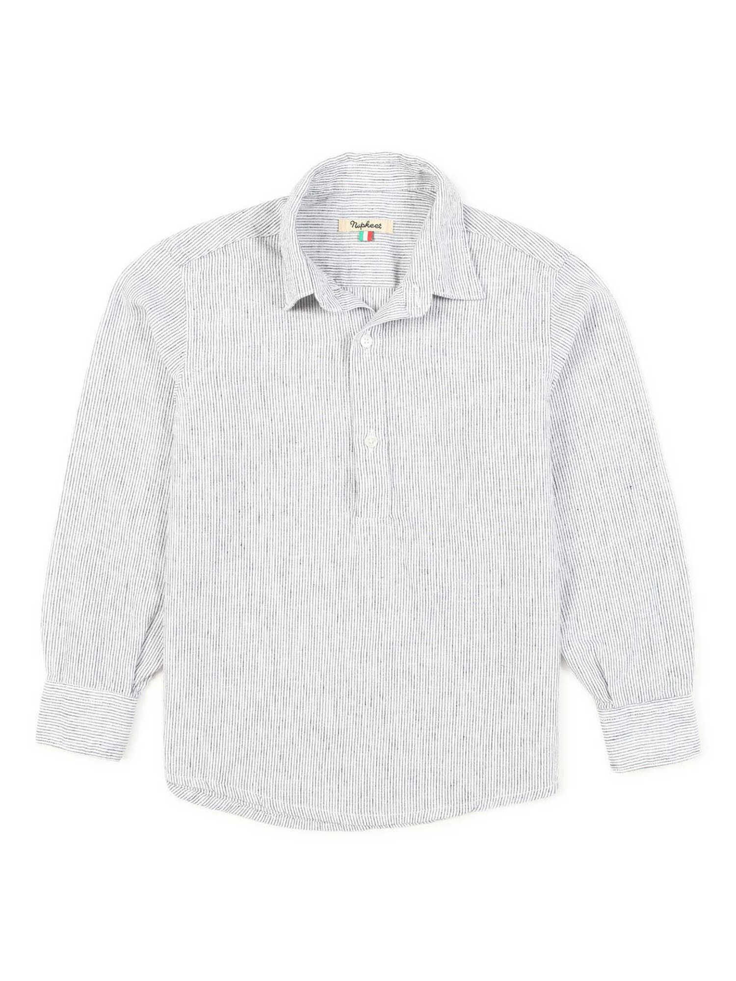 Linen and cotton shirt, blue striped design, polo buttoning