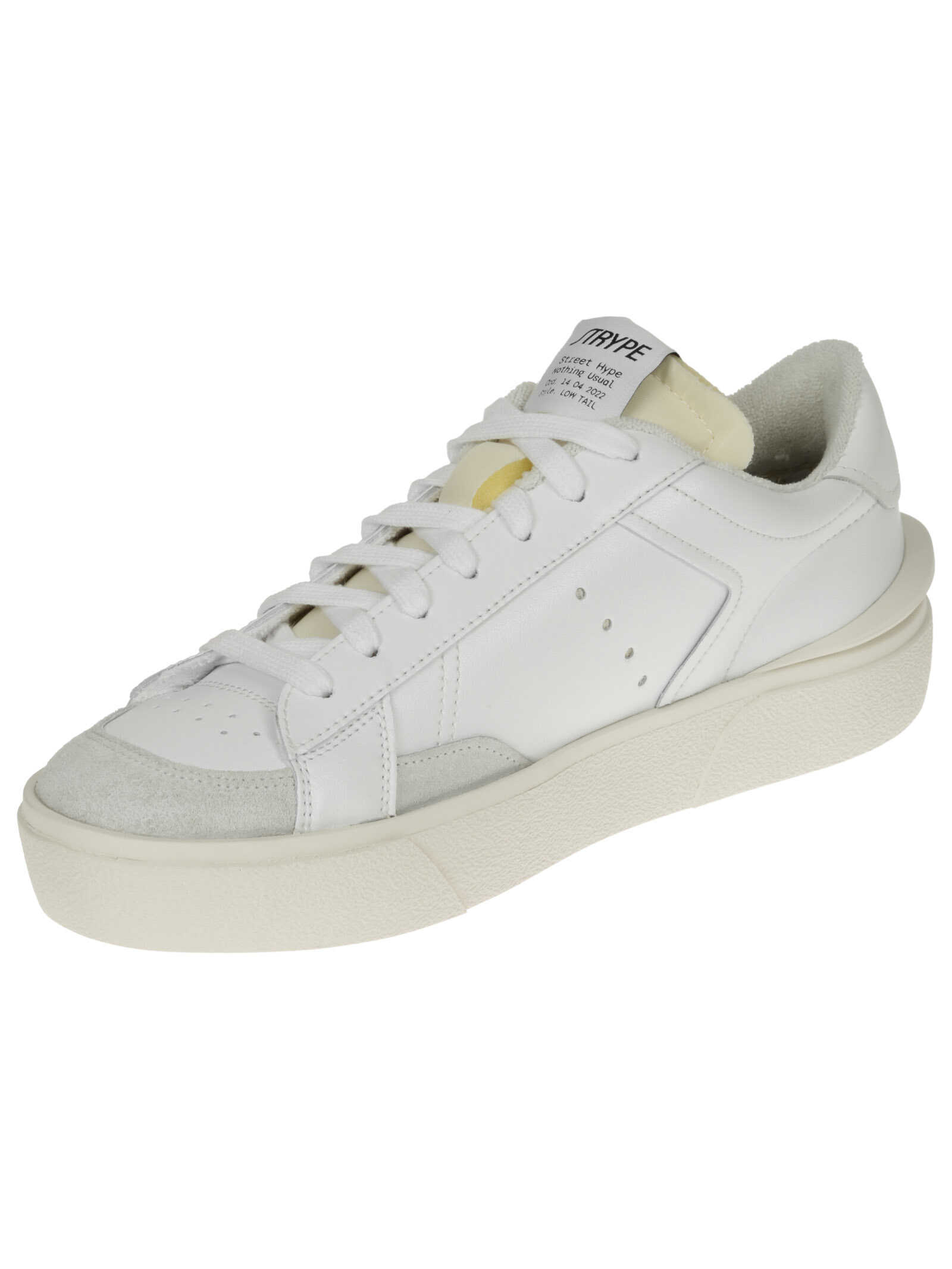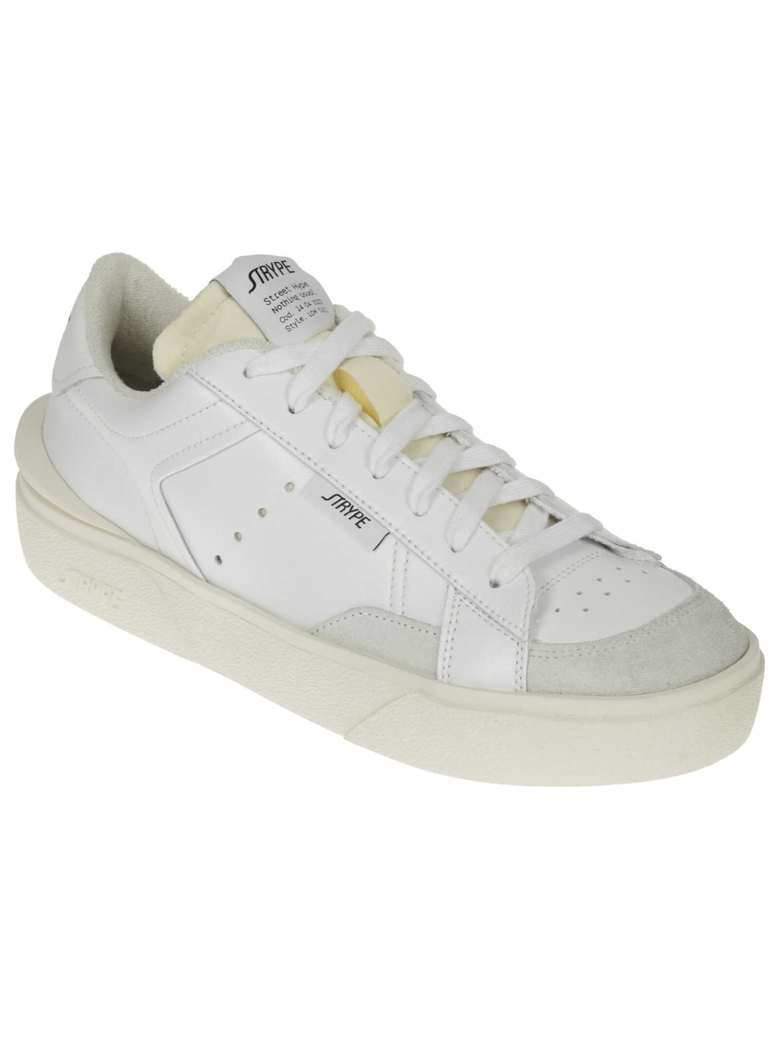 `STRYPE sneakers made with smooth calfskin leather, suede finishes, lace-up, round toe, breathable perforations, synthetic fabric tongue with applied logo, lateral applied logo patch, low top, padded ankle, rubber reinforced heel with printed logo, cotton sponge interior, printed logo on the insole, rubber sole.`