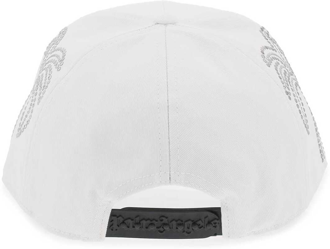 Cotton twill baseball cap by Palm Angels decorated with Monogram and palms crafted in silver micro stiuds. Adjustable strap at back, lined. One size fits all.