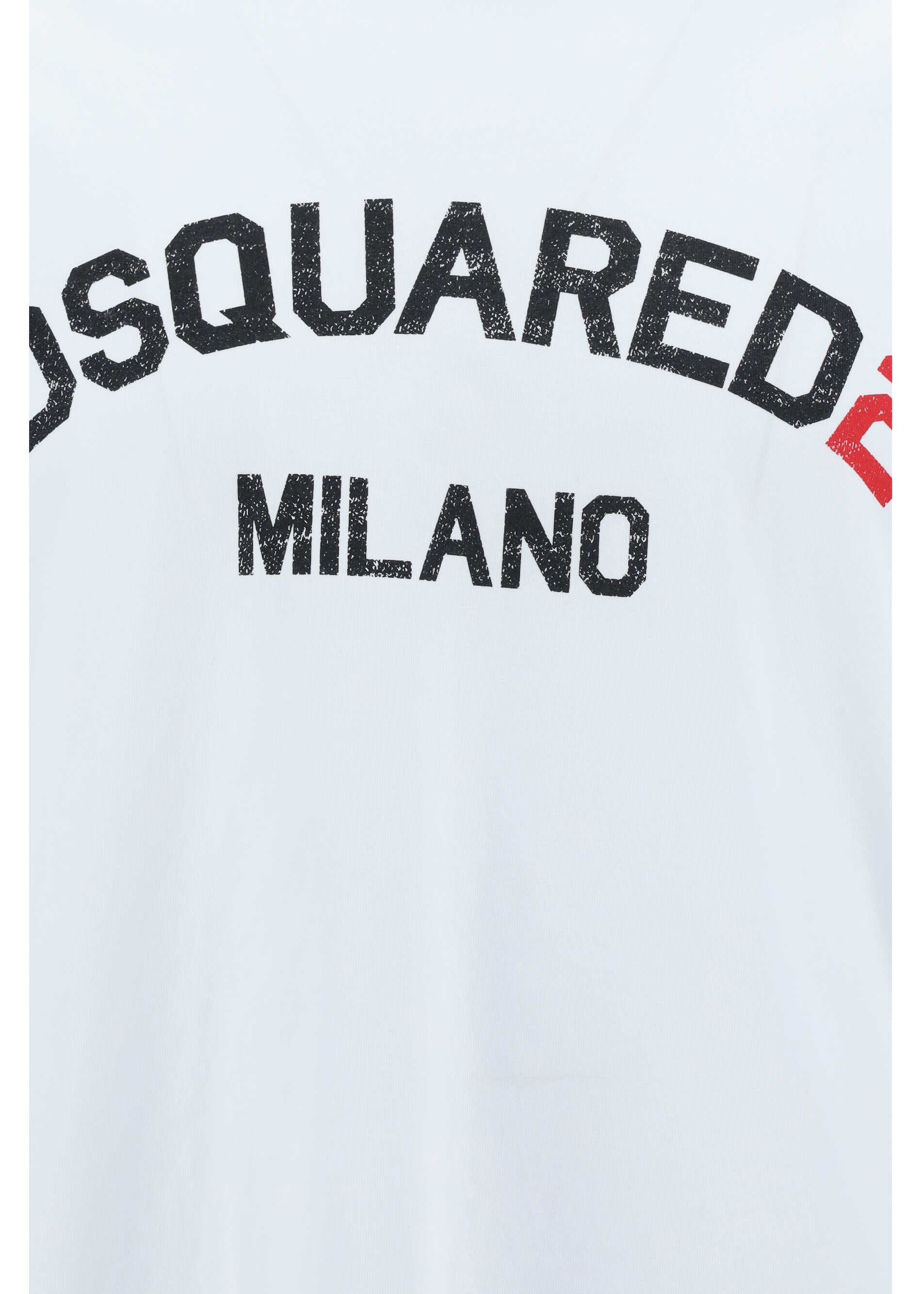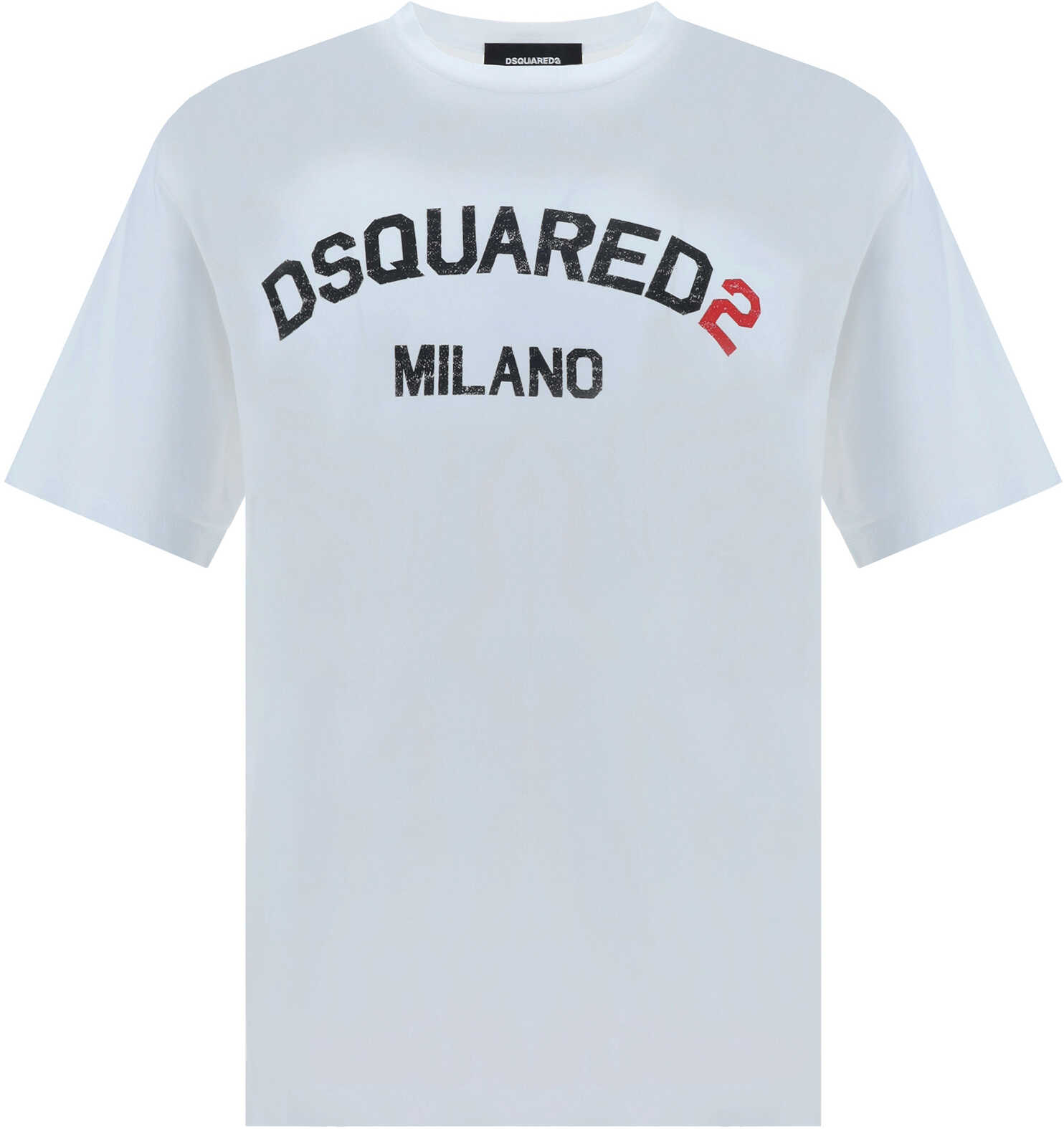 Cotton T-Shirt by Dsquared2, ribbed crew neck, contrasting iconic brand monogram on front, monochrome pattern, regular fit.