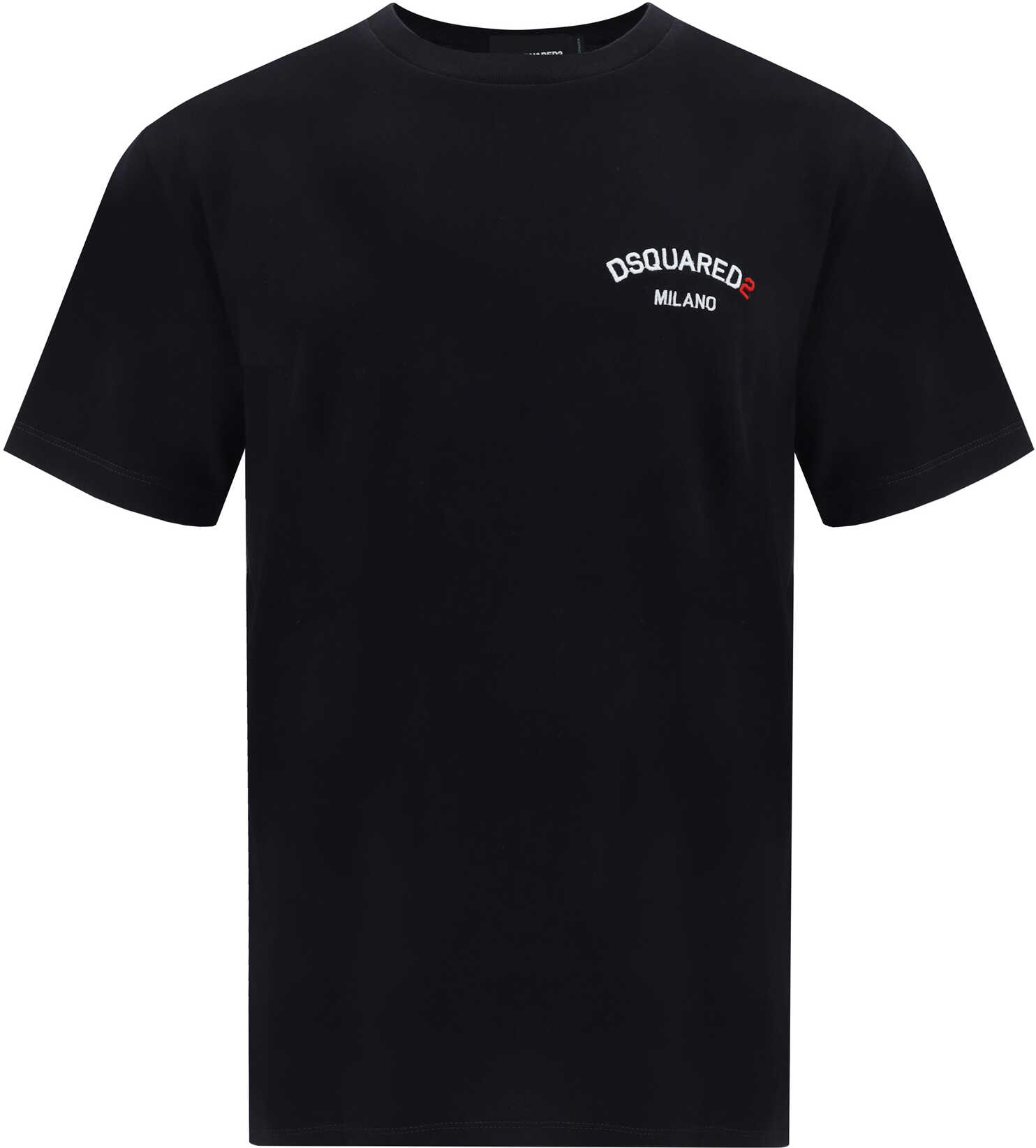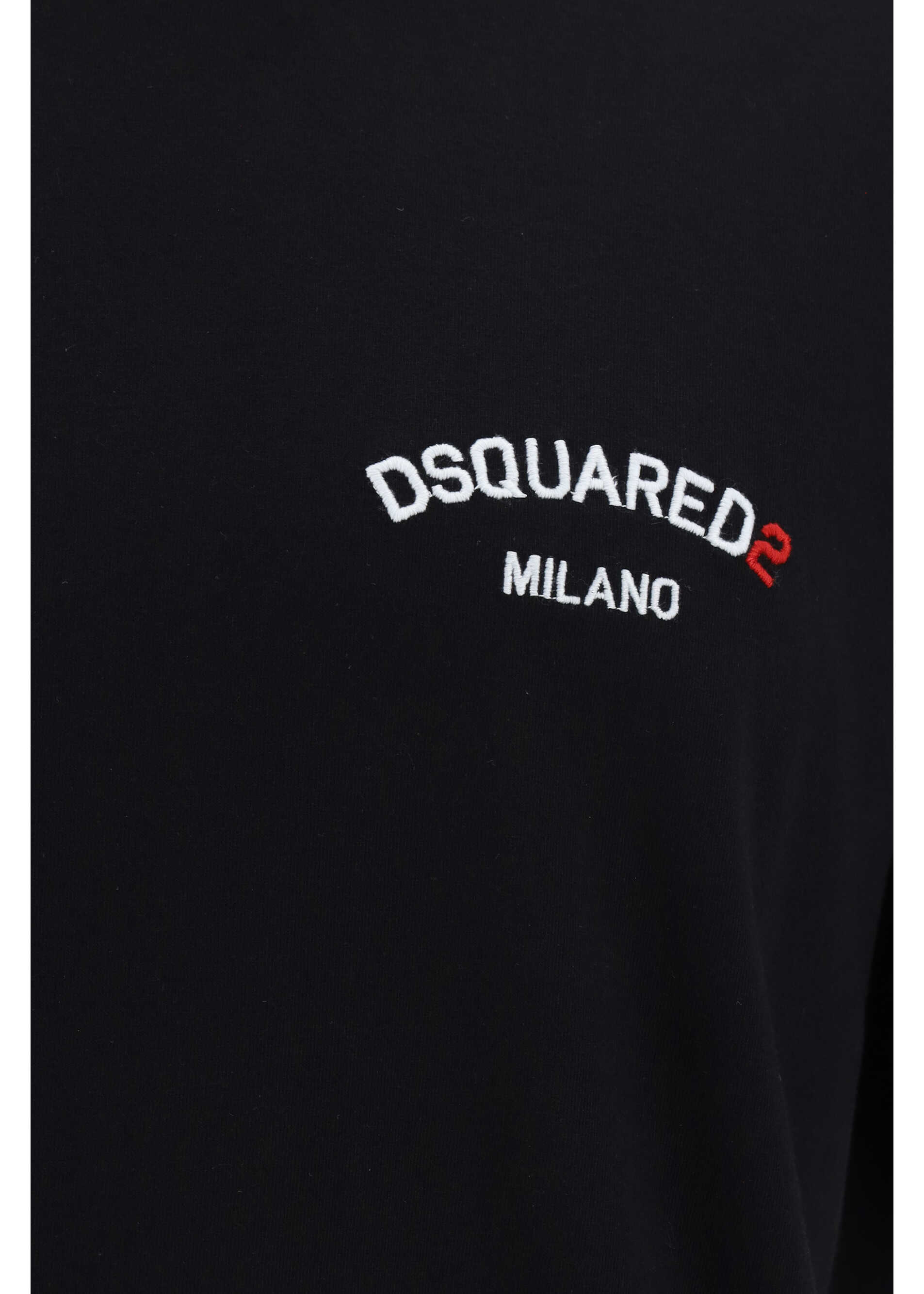 Cotton T-Shirt by Dsquared2, ribbed crew neck, contrasting iconic brand monogram on front, monochrome pattern, regular fit.