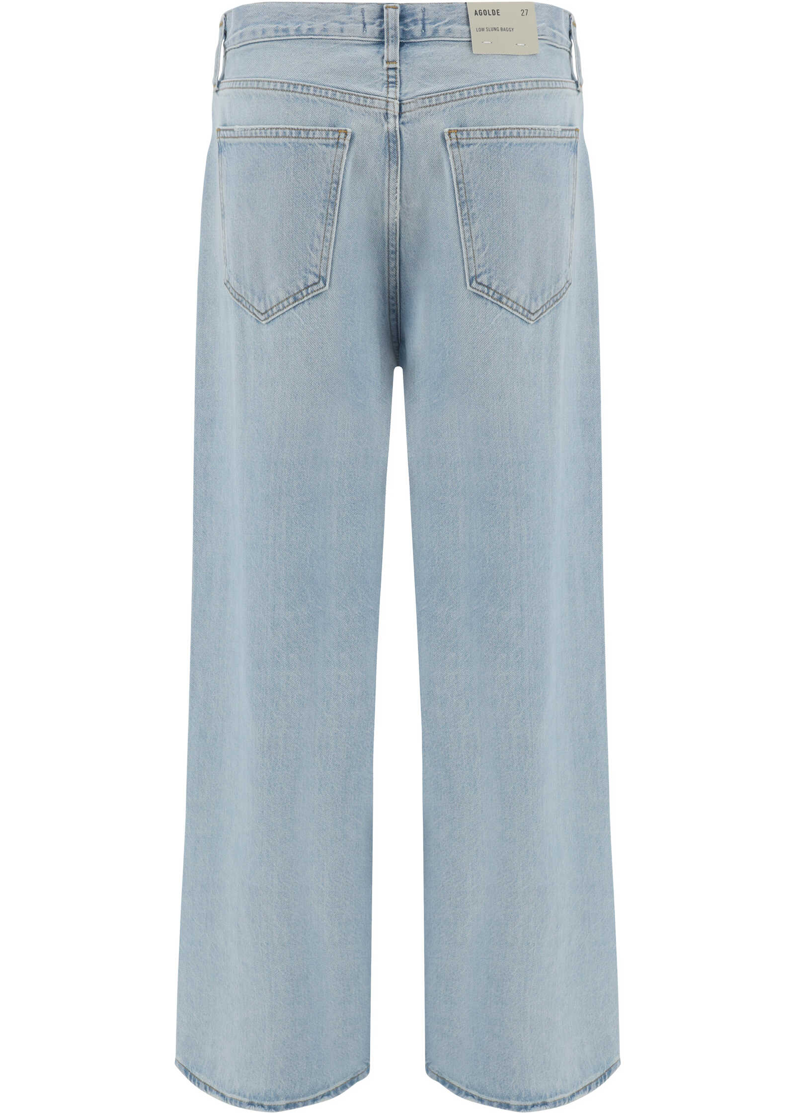 Cotton Low Slung Jeans by Agolde, five-pocket baggy style, front button closure, waistband loops.