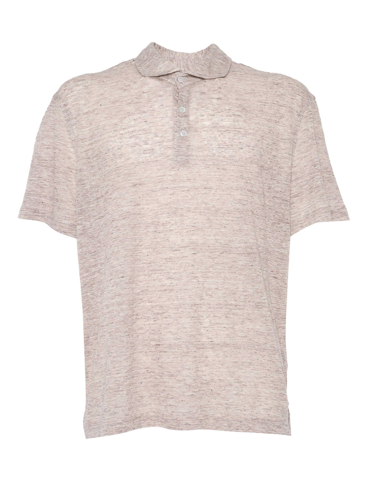 Men's melange linen T-shirt with classic collar, front buttons, short sleeves.