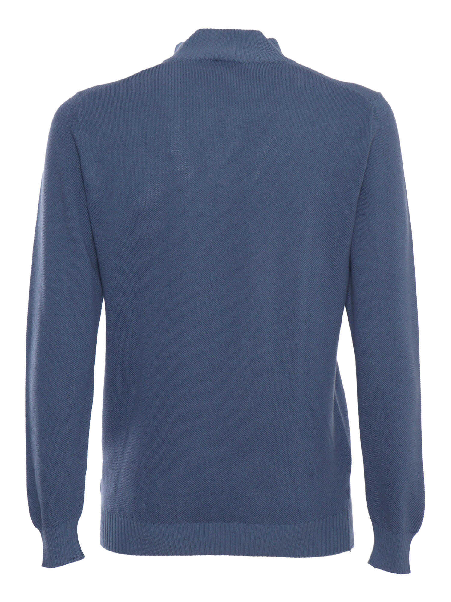 Fedeli Supima Dusty cotton sweater with V-neck, high collar, ribbed hems.