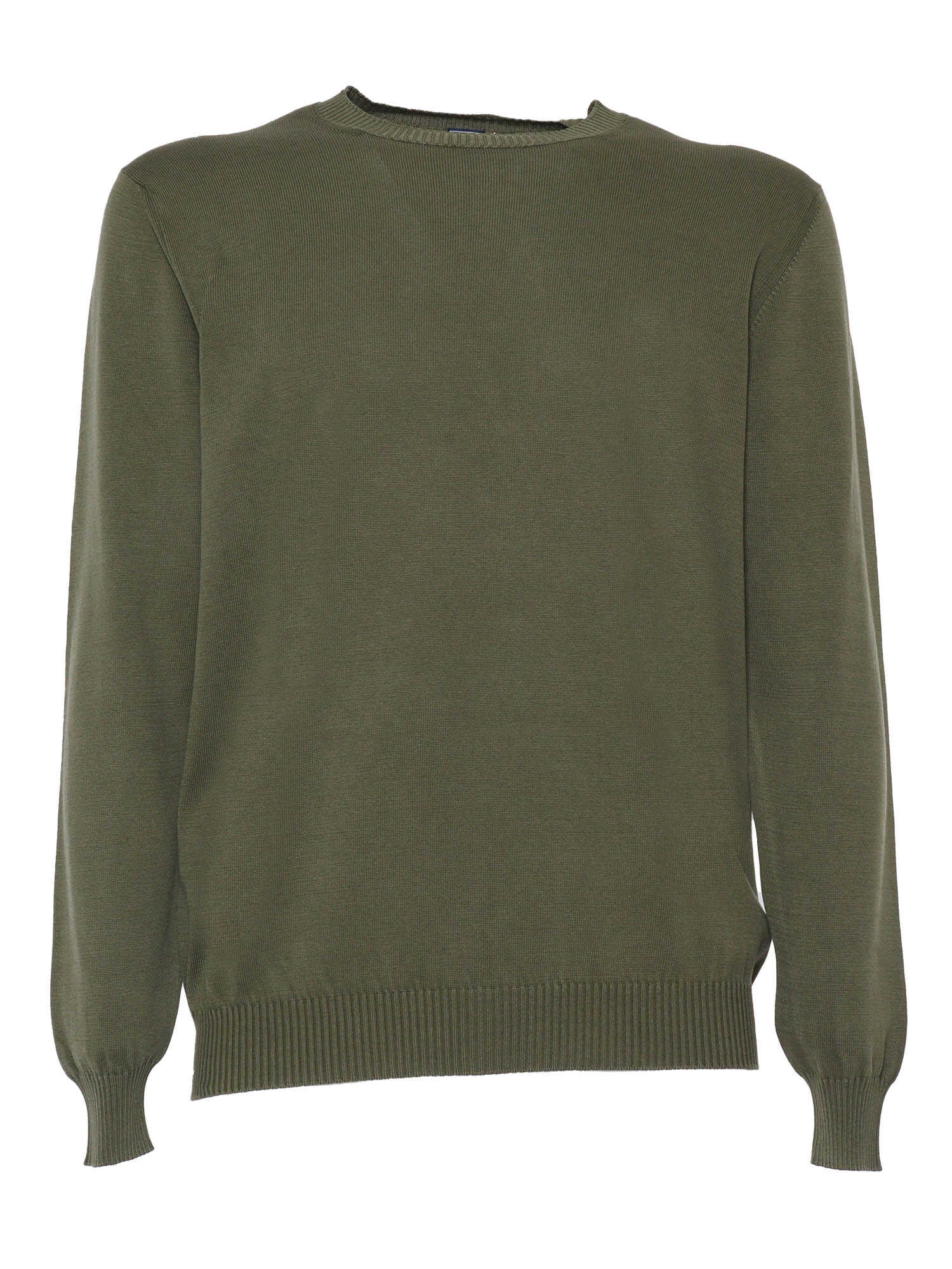 Military green Giza Light Frosted sweater in cotton, crew neck, ribbed hems.