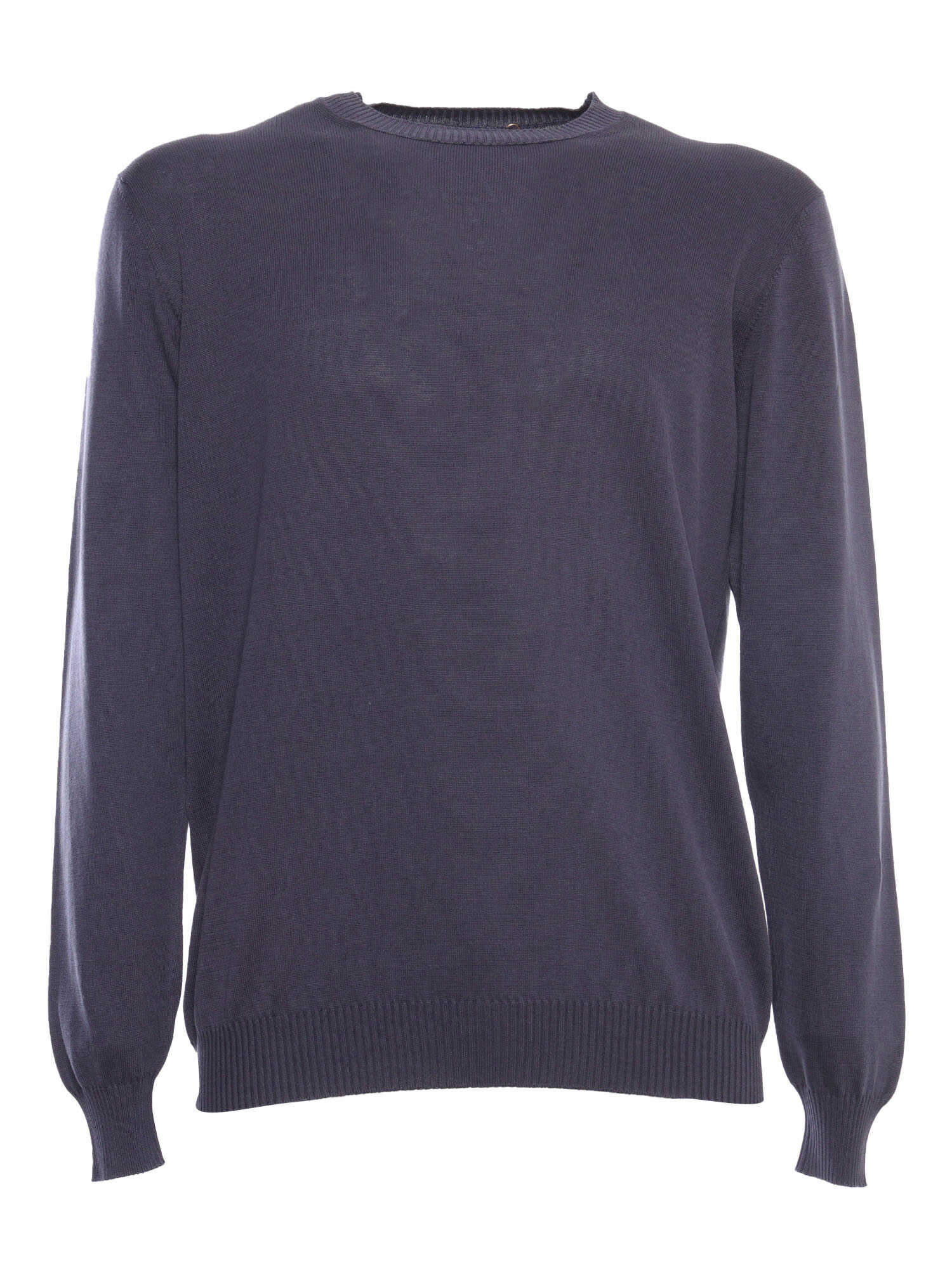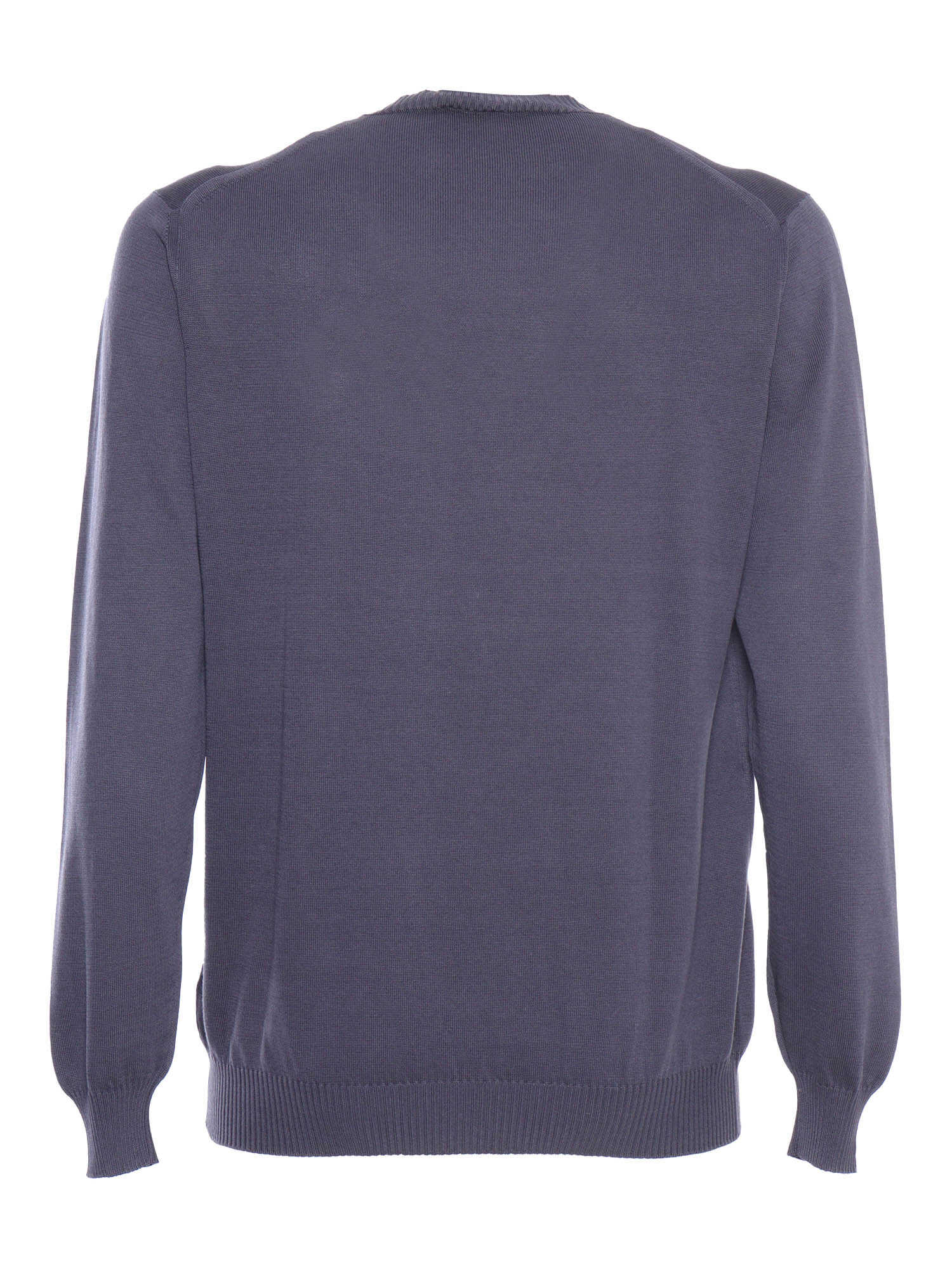 Giza Light Frosted blue cotton sweater with boat neckline, ribbed hems.