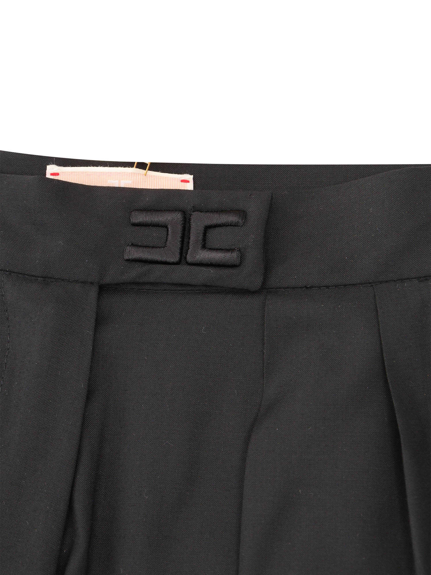 Elisabetta Franchi women's black palazzo trousers in fresh wool, welt pockets, logo embroidery on the waistband
