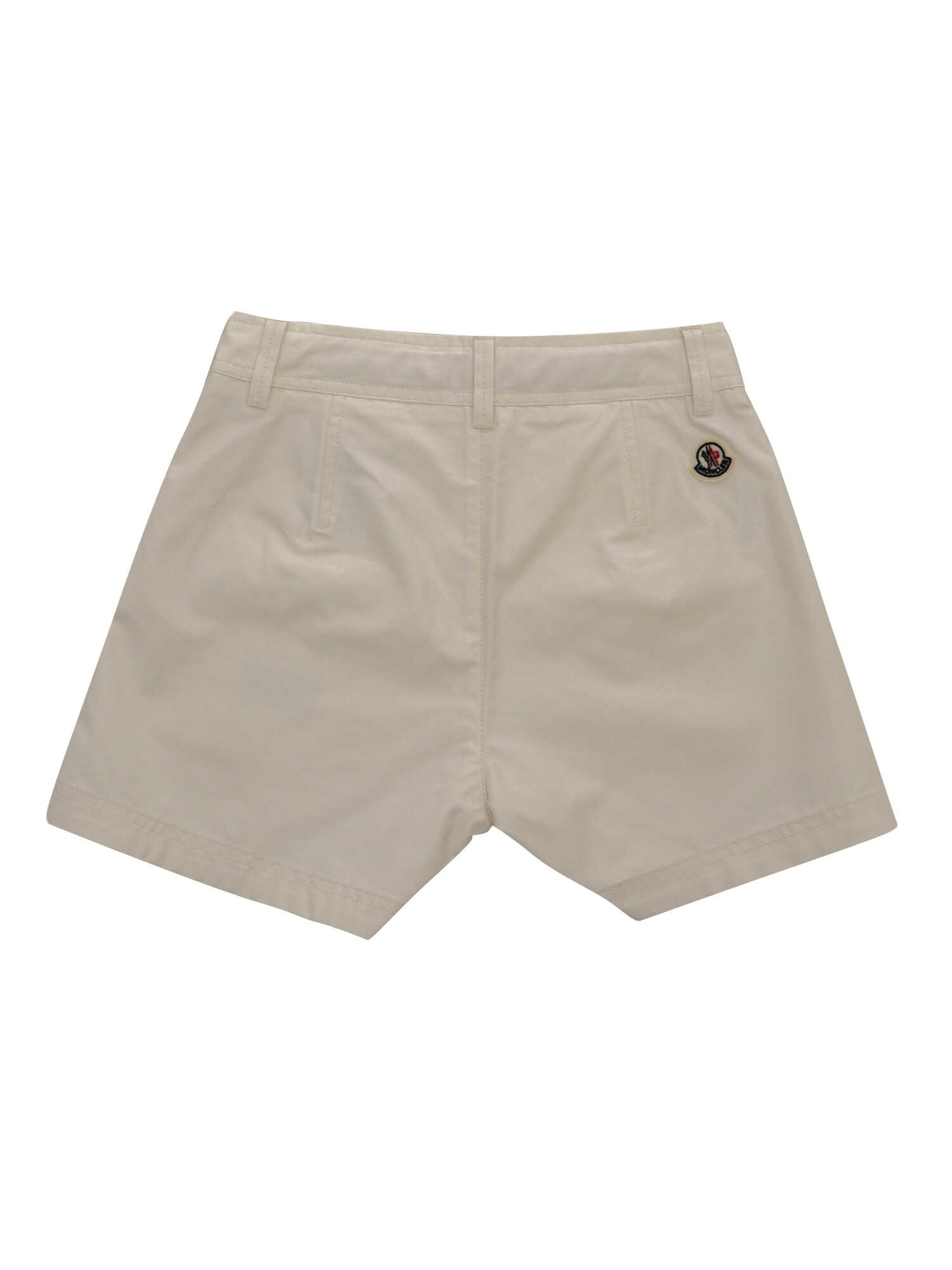 Beige shorts in cotton and polyamide blend with front patch pockets, belt loops, side zip.