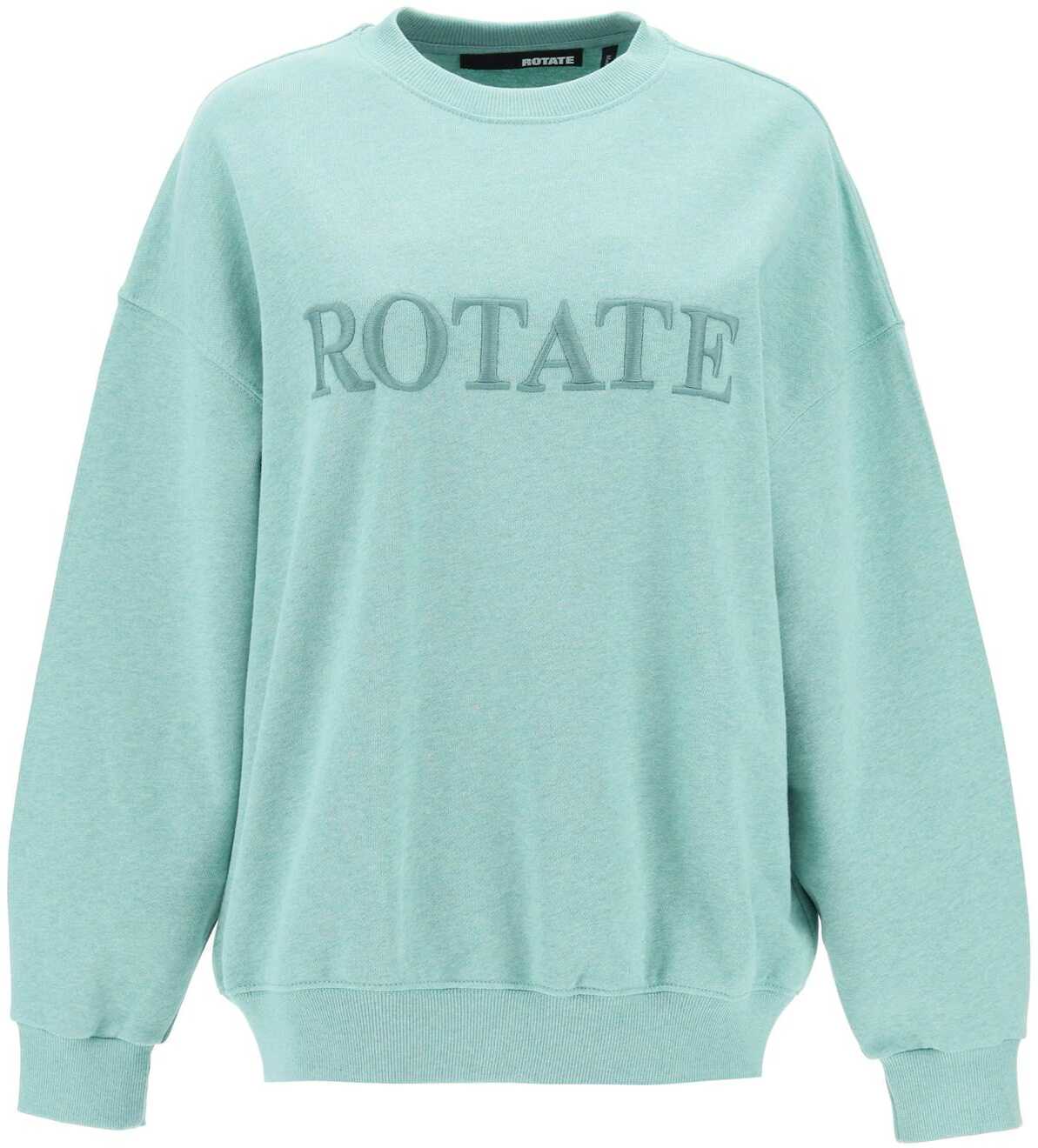 The Rotate crewneck sweatshirt is made of brushed organic cotton jersey, with a boxy fit and decorated with a tone-on-tone embroidered logo on the chest. Ribbed edges. The model is 177 cm tall and wears size XS.