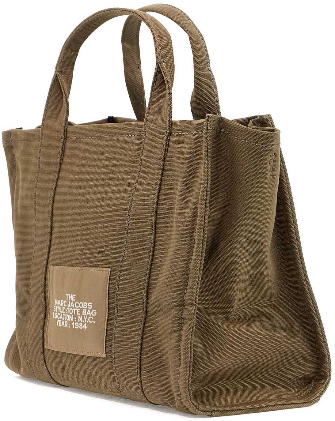 The Canvas Medium Tote Bag by Marc Jacobs made cotton fabric with detacheble and adjustable fabric shoulder strap. Contrasting lettering logo on the front, top zip closure and side handle. Unlined interior with two open pockets and a zippered one, steel-tone metalware.