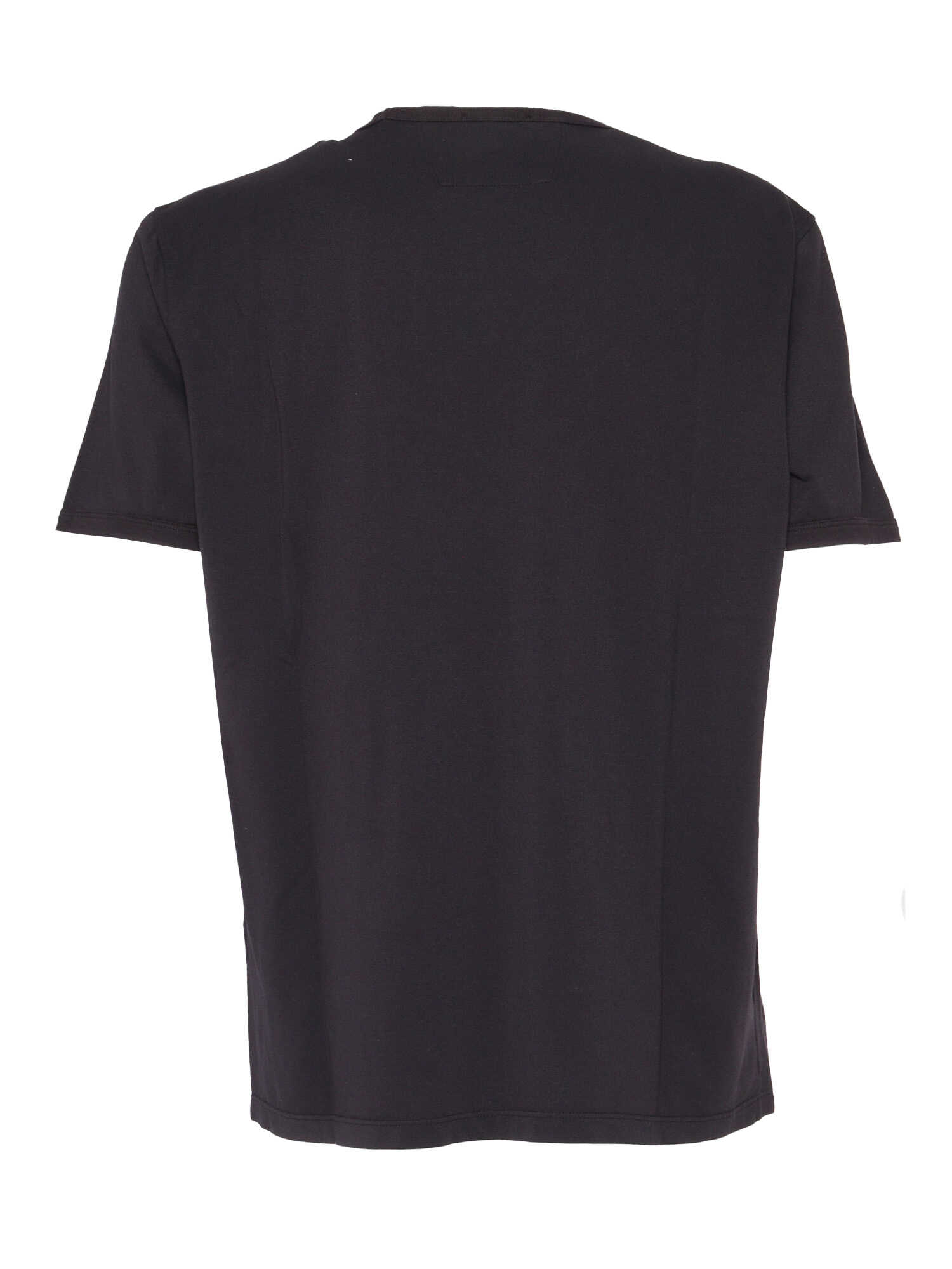 Black cotton blend T-shirt for men, crew neck, short sleeves, front pocket with white logo.