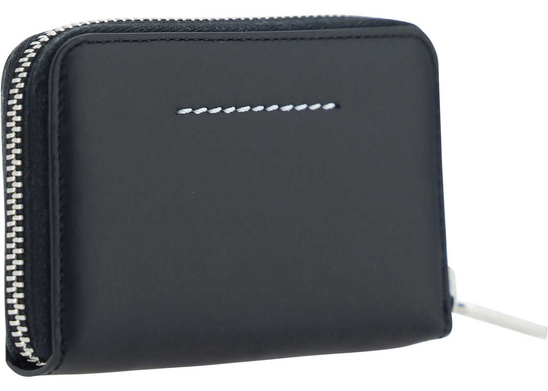 Calfskin Coin Purse by MM6, iconic brand monogram press-stamped on the front, iconic brand stitching embroidered on the back, lap zipper closure.