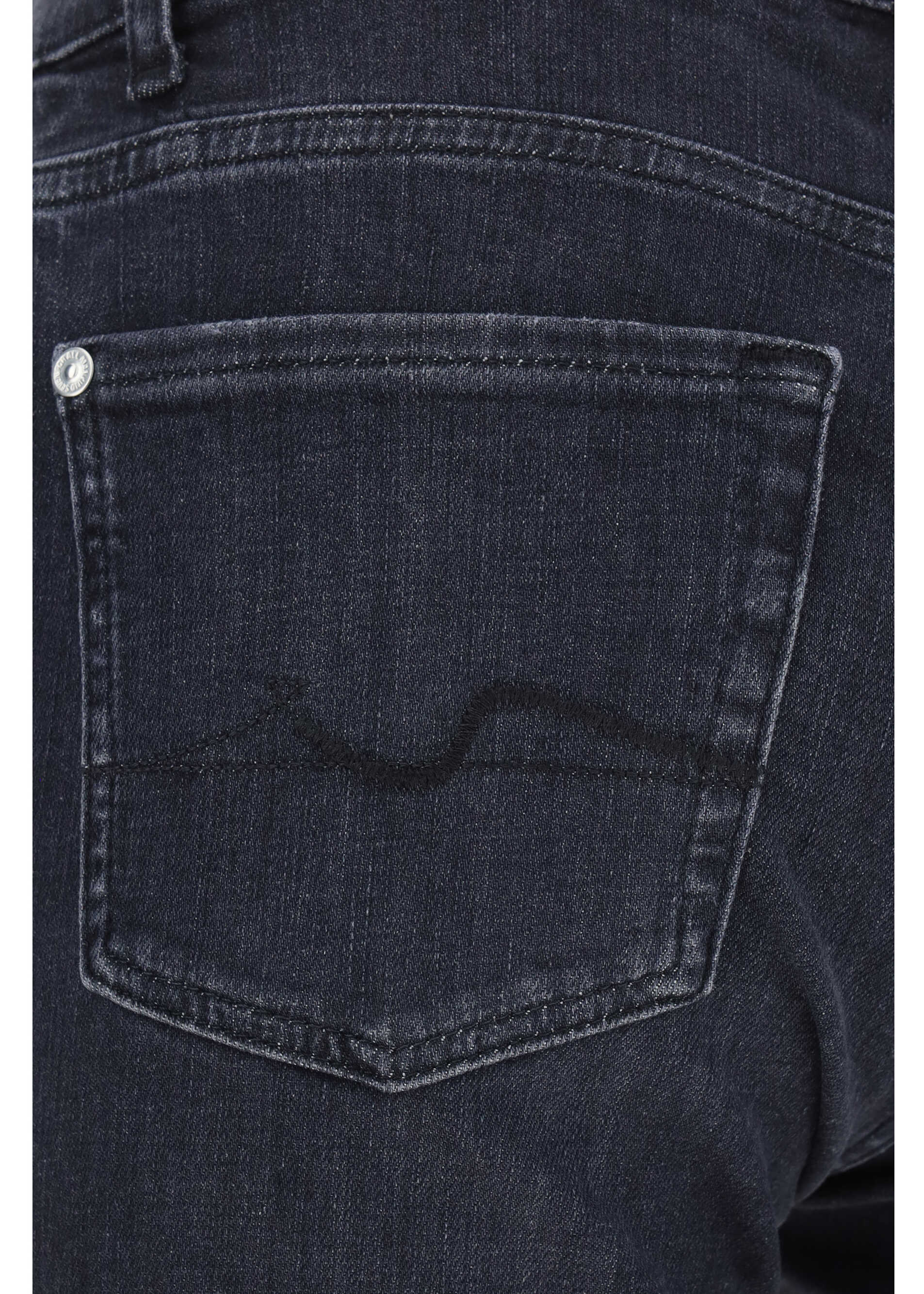 Cotton Illusion Space Jeans by 7For, five-pocket design, front button and zipper closure, waistband loops.