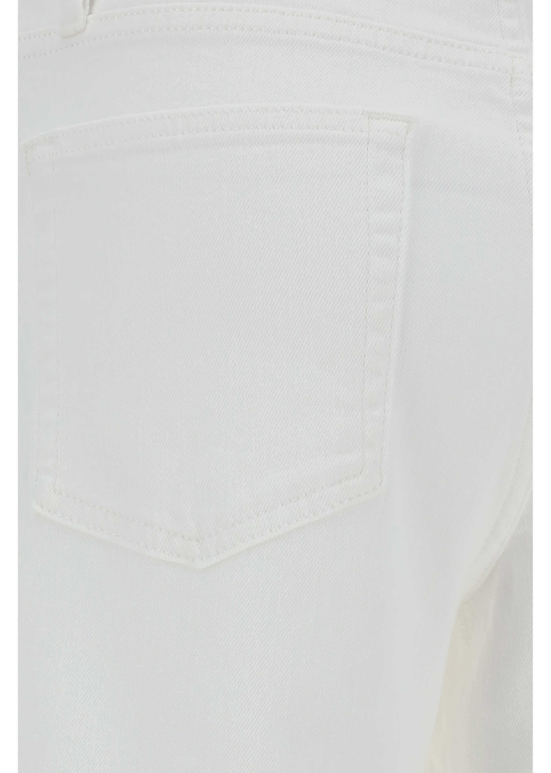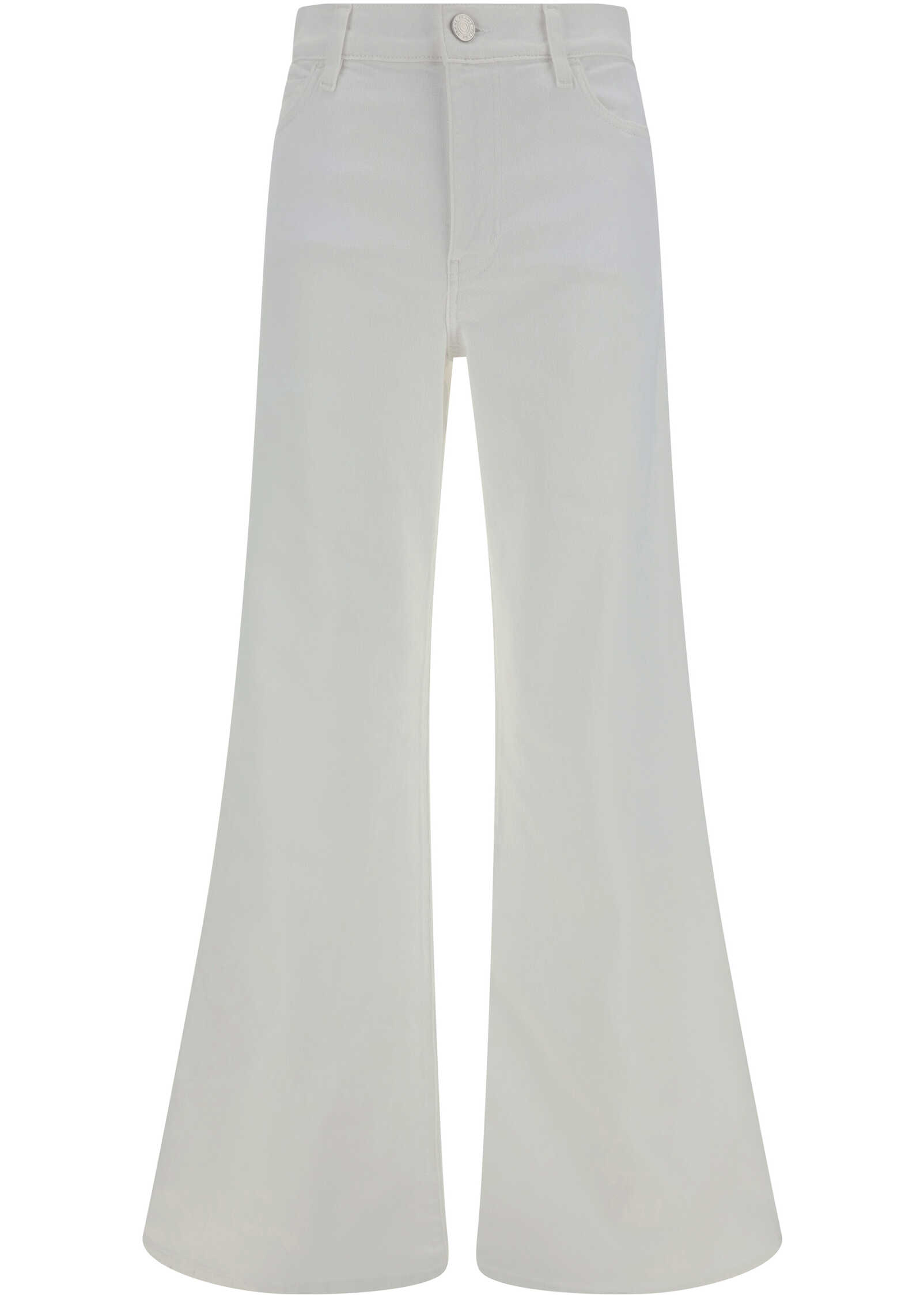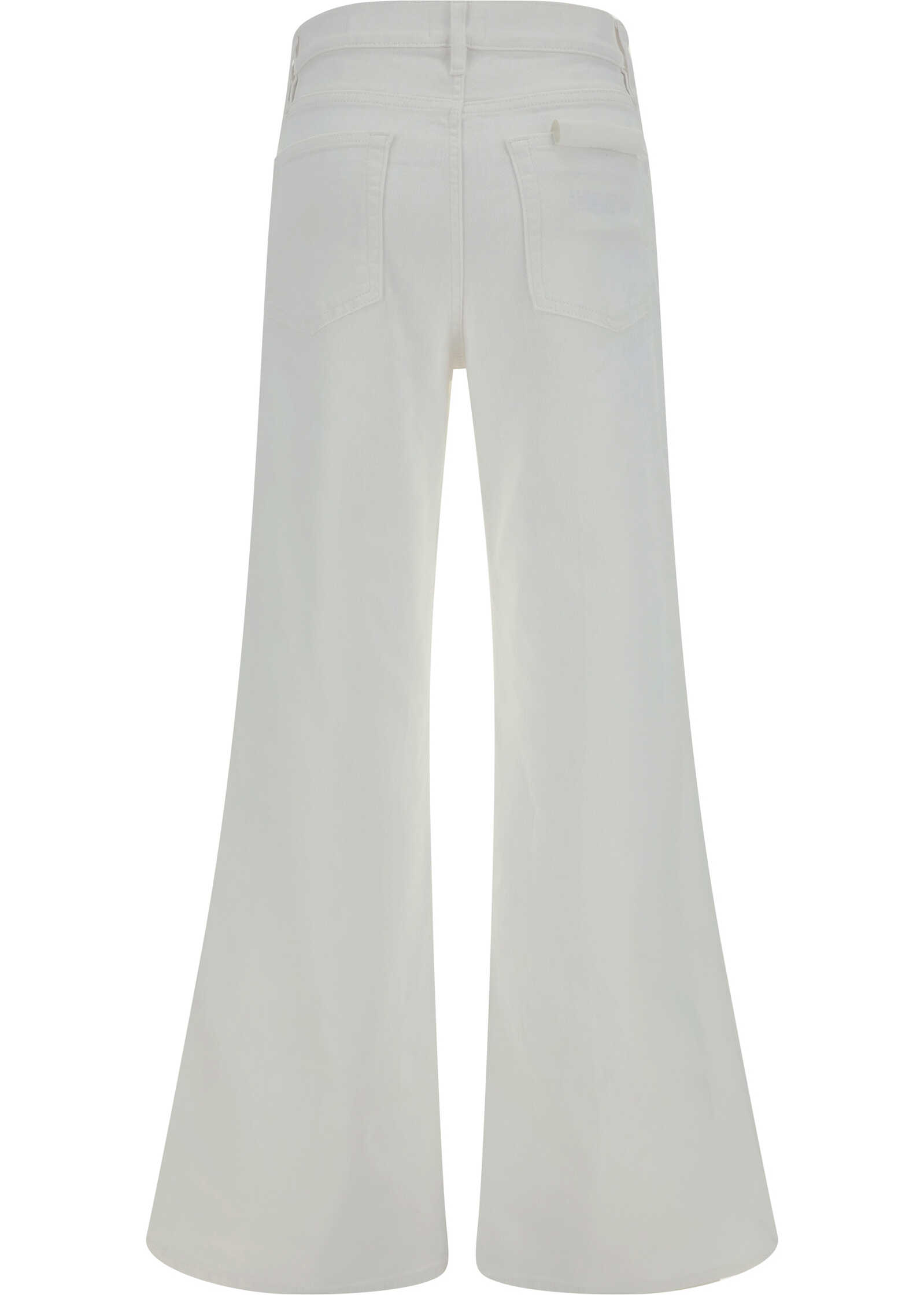 Cotton Le Palazzo Pants by Frame, five-pocket swide-leg style, denim design, front button and zipper closure, waistband loops, monochrome pattern.