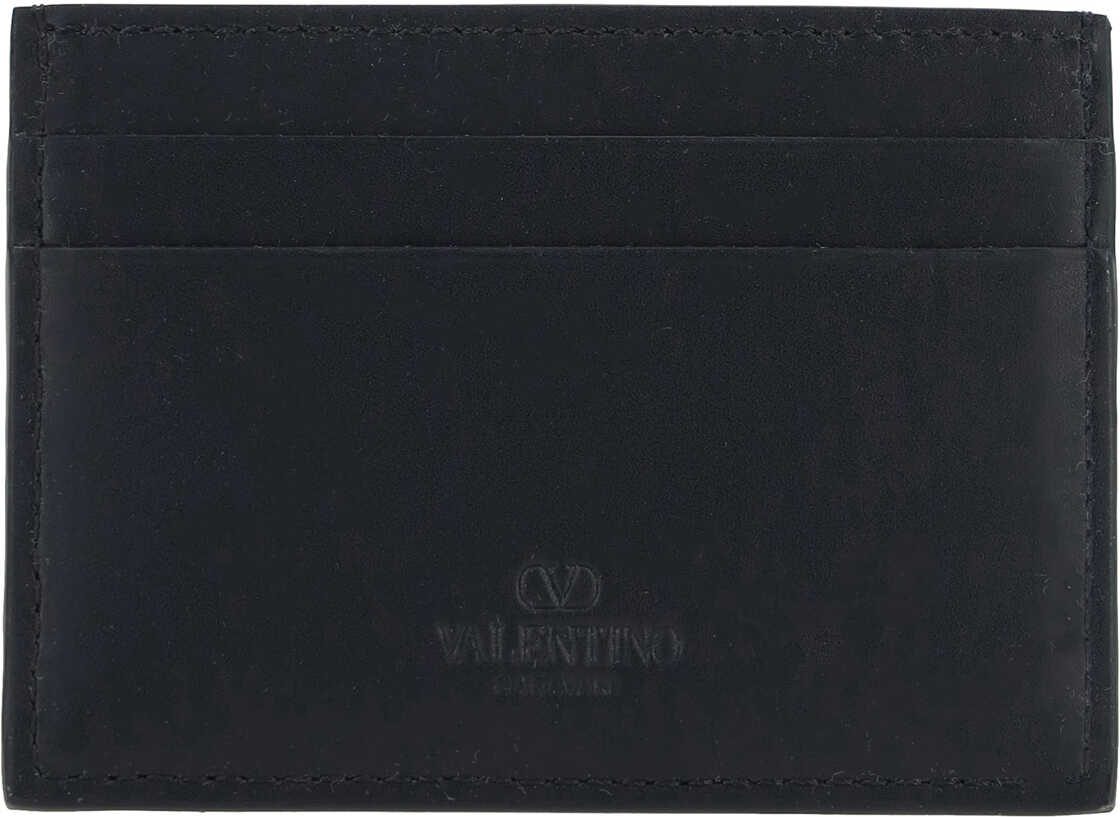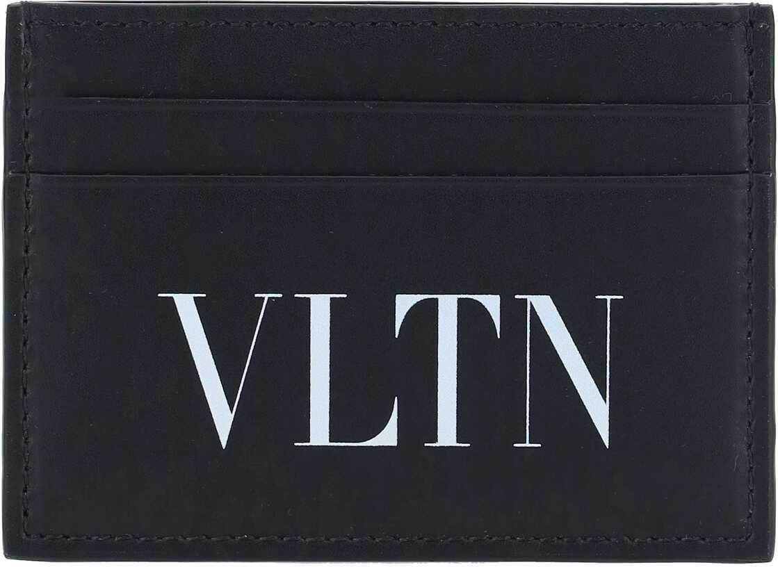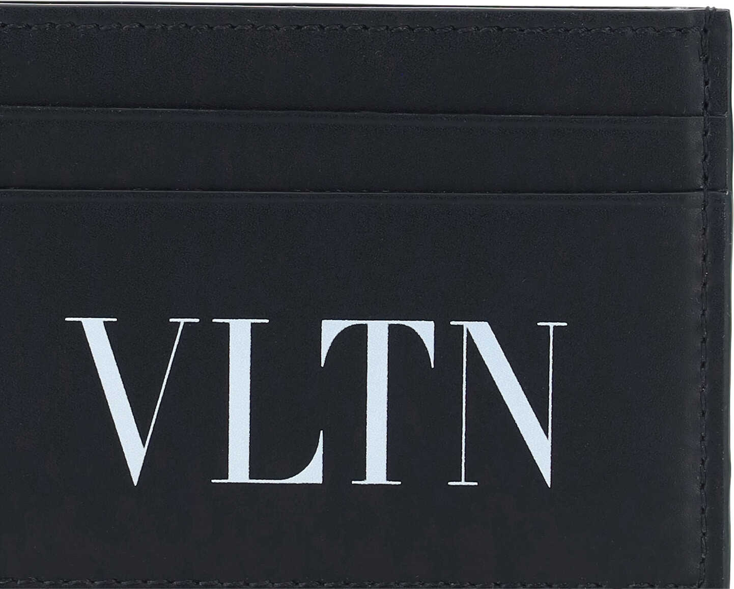 Calfskin Card Holder by Valentino Garavani, card slots on front and back, iconic VLTN monogram printed in contrast on front.