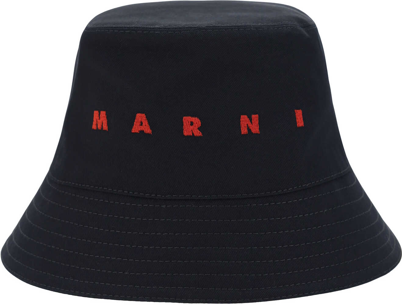 Cotton Bucket Hat by Marni, iconic brand monogram contrasting on the front.