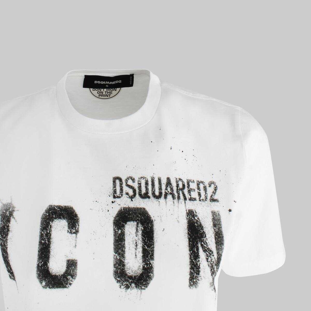 White cotton crewneck t-shirt by Dsquared2 featuring front sprayed icon print and straight hem.CrewneckShort sleevesIcon print logo on the frontMATERIAL: 100% COTTONCOLOR: WHITEMADE IN ITALY