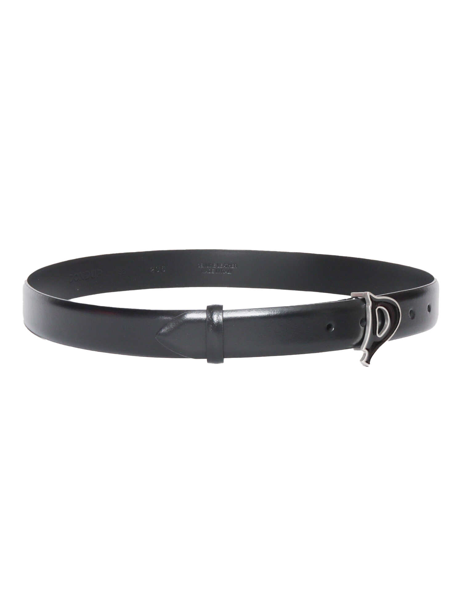 Black leather belt with Dondup logo on the front, 3cm thick.