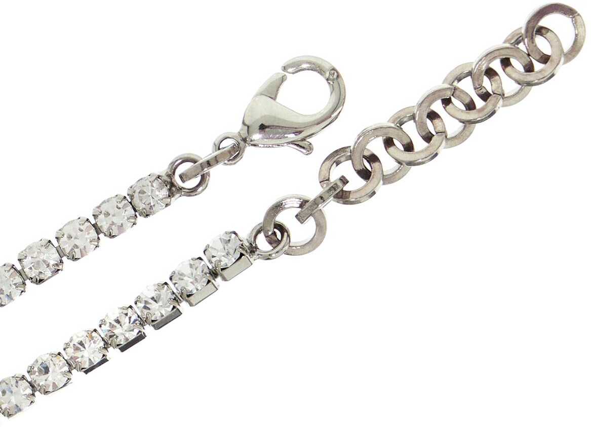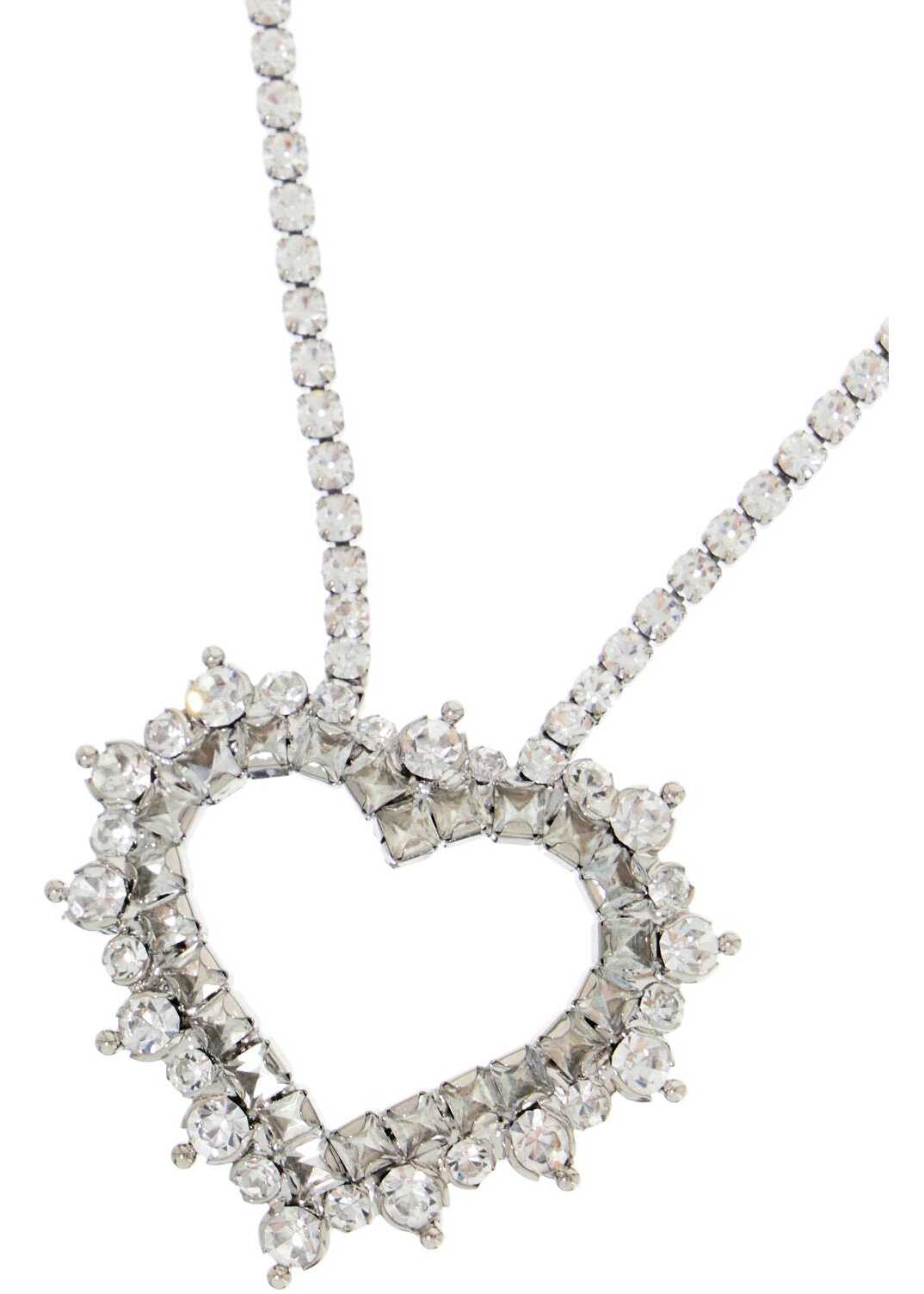 This Alessandra Rich necklace is made of silver-plated brass and crystals, featuring a heart pendant. The closure is adjustable with a lobster clasp.