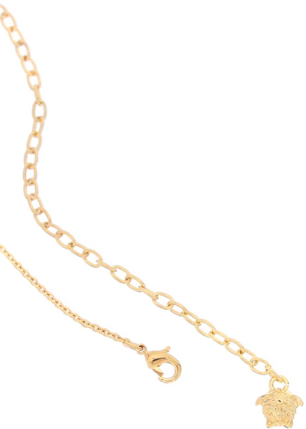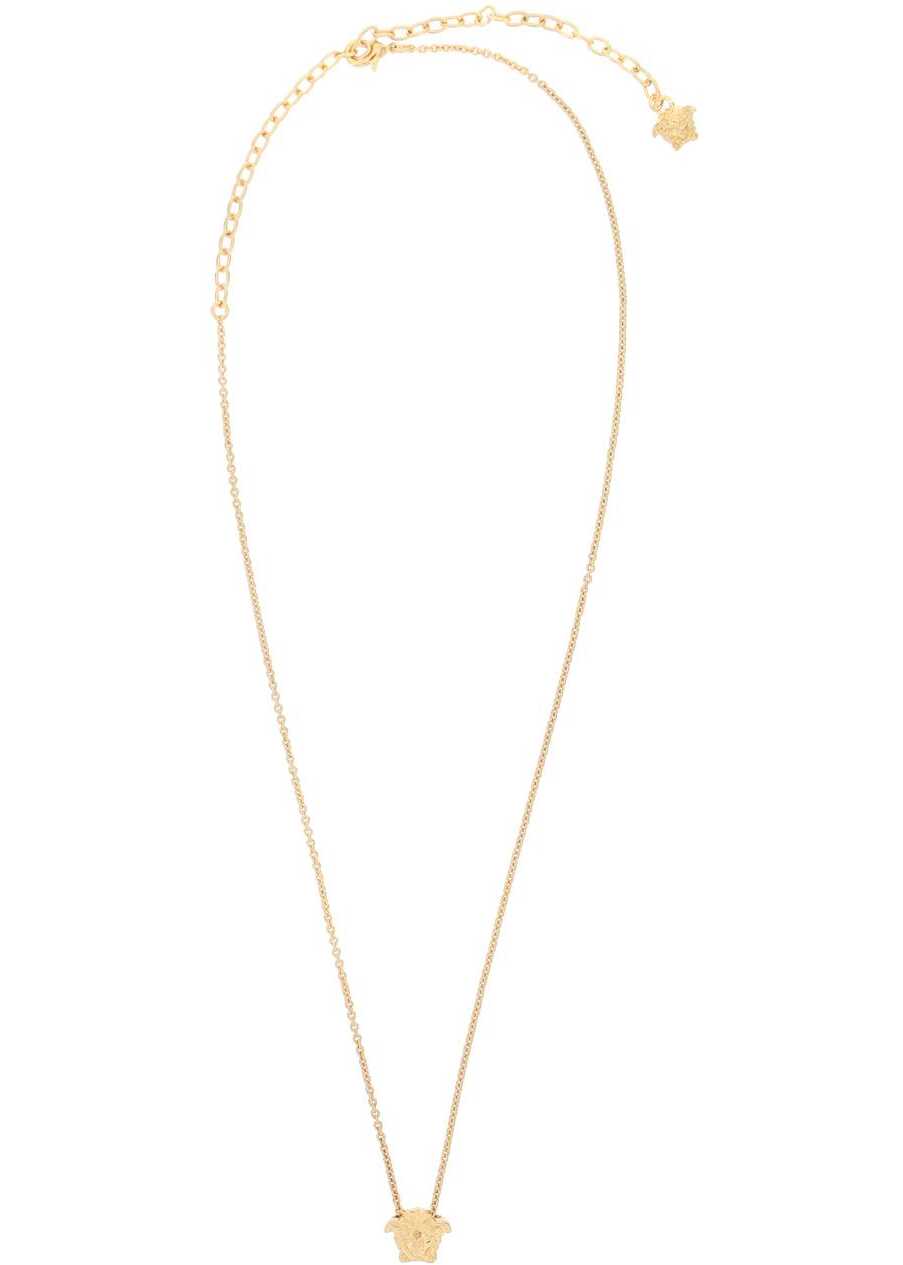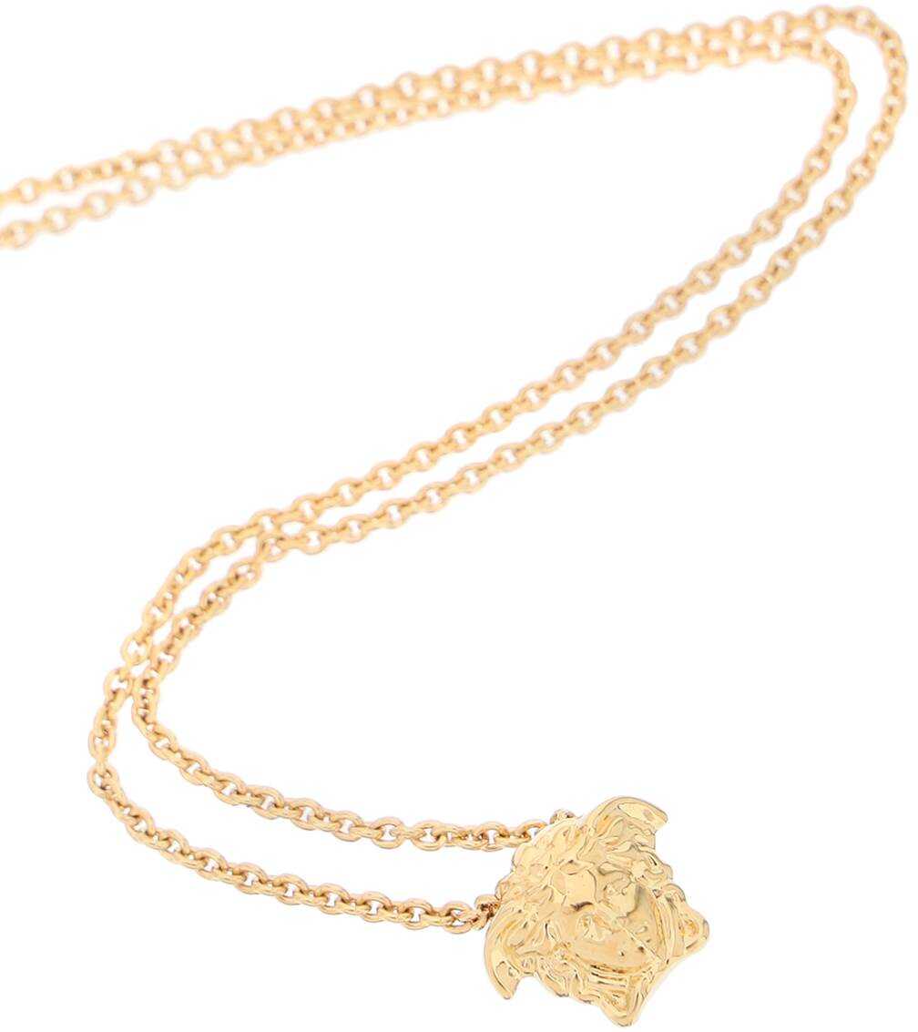 Gold-finished metal Versace necklace featuring La Medusa pendant and adjustable lobster clasp. Lead and nickel free.