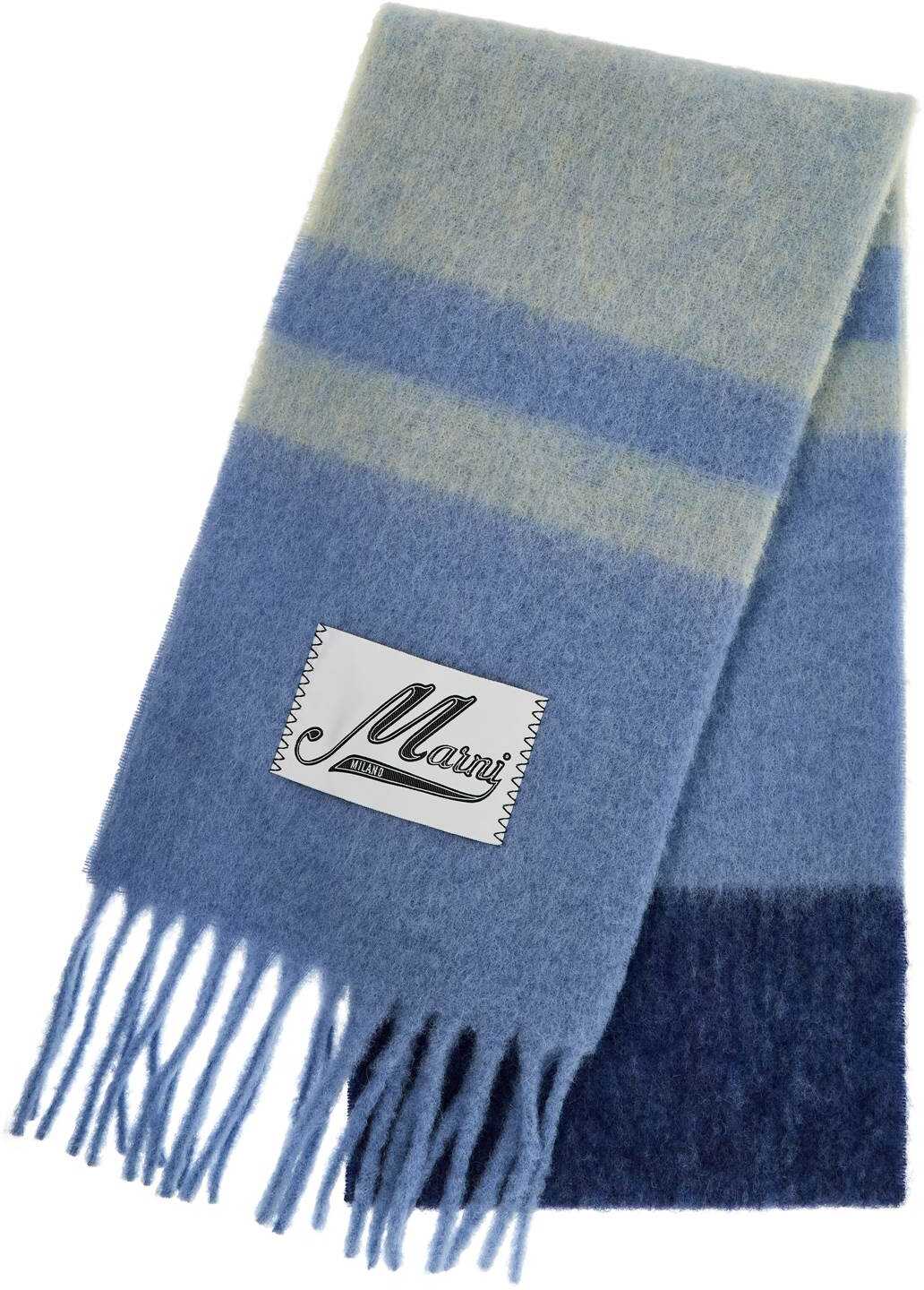 This Marni scarf is made of a blend of mohair and features striped patterns with fringes at the ends. It also includes a satin label with italicized logo lettering.